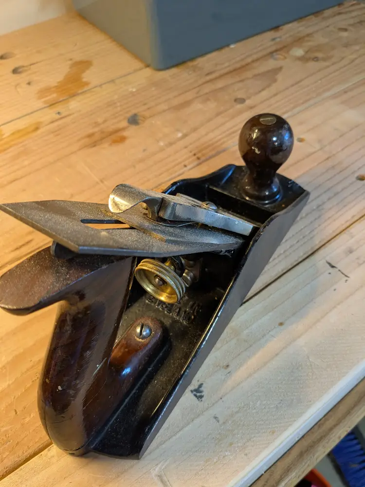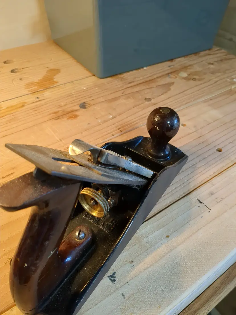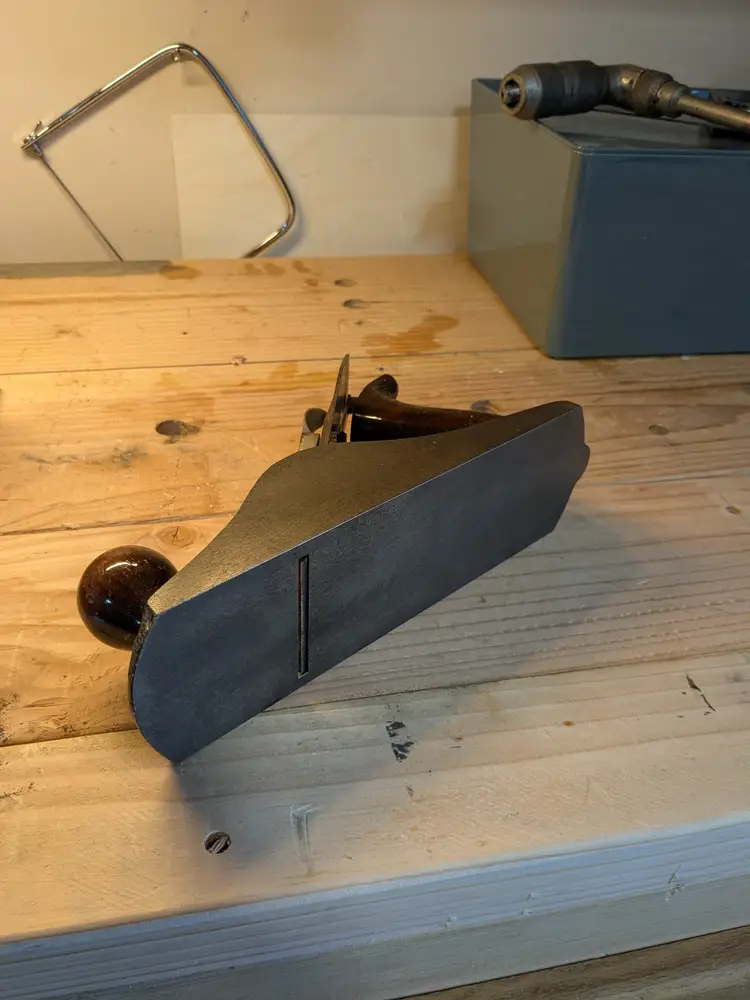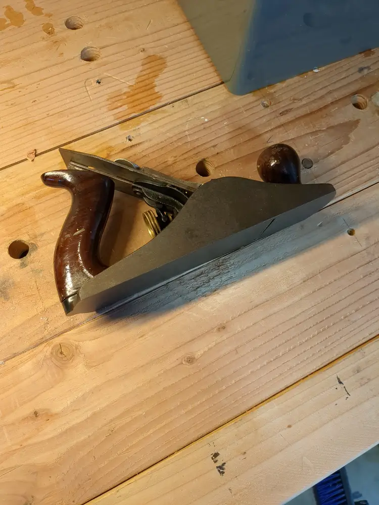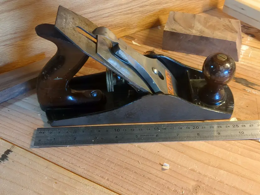 Chonky Frankenstein! This has an English sole and the rest is American made parts. I brought the sole over from England myself. Nice heavy smoother or possibly scrub if that's your thing.