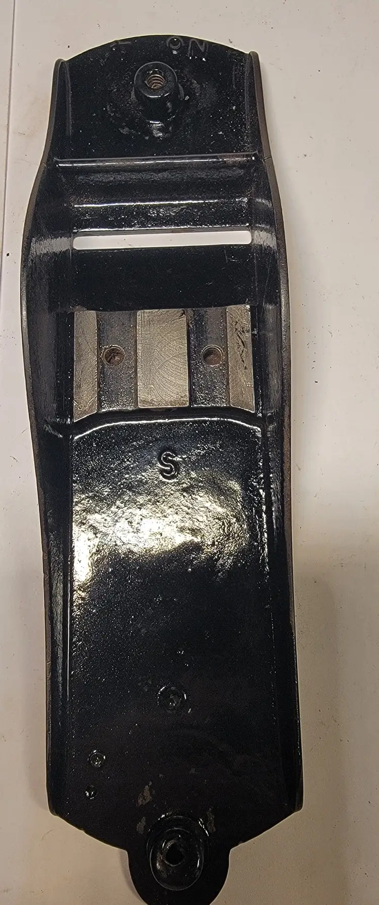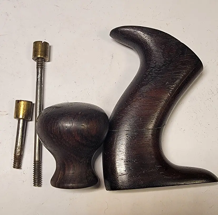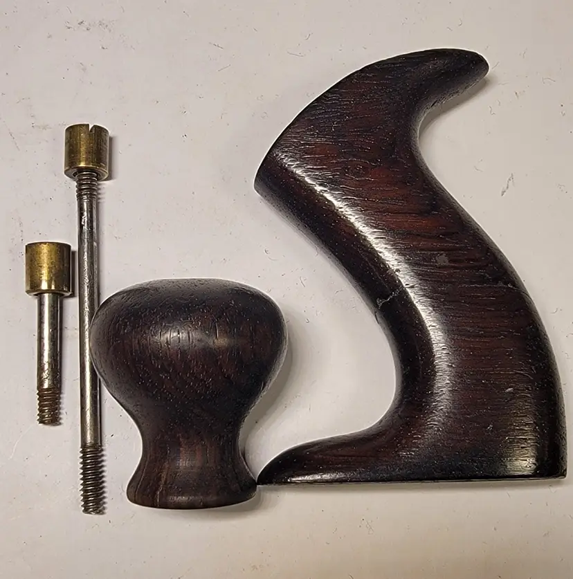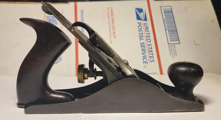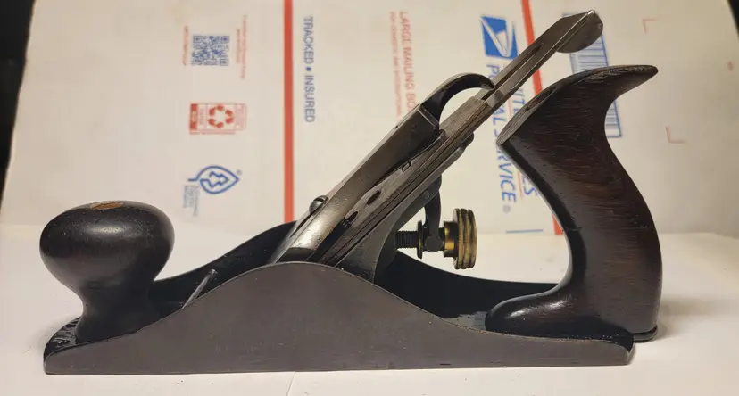 Up for sale is a super nice old Stanley #4 type 7. This plane has the smooth sole. It has the Q logo on the iron and I have sharpened it going through the grits up to 8000. The Japanning was very spotty so I stripped it off and re-Japanned it using Stanley's factory recipe and baked it on low heat 5 times to set the Japanning. This plane the S fountry mark on the bed . The frog is a left over type six frog with the Bailey info inside the brass adj. nut and it has right handed threads. This was typical for Stanley to use up older model parts on newer models. It has the 3 patent dates on the lateral adj. lever.The rosewood tote and knob show their original patina. I have flattened the sole and it is flat. The tote has a nicely repaired crack and is barely noticable. There is no foundry mark on the levey cap as it is probably from the previous model also.