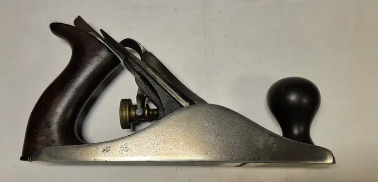 Up for sale is a nice Stanley #4 type 11 hand plane. This one has the corrugated sole and it is flat. I have cleaned up the sides and re-Japanned the bed baking it 5 times to set the Japanning. I have sharpened the iron going through the grits up to 8000. This plane has an older Q iron. The dark rosewood tote and knob show their original patina. The tote and knob are in great shape with no cracks or major chips or dings. Super nice plane ready to go to work in your shop.