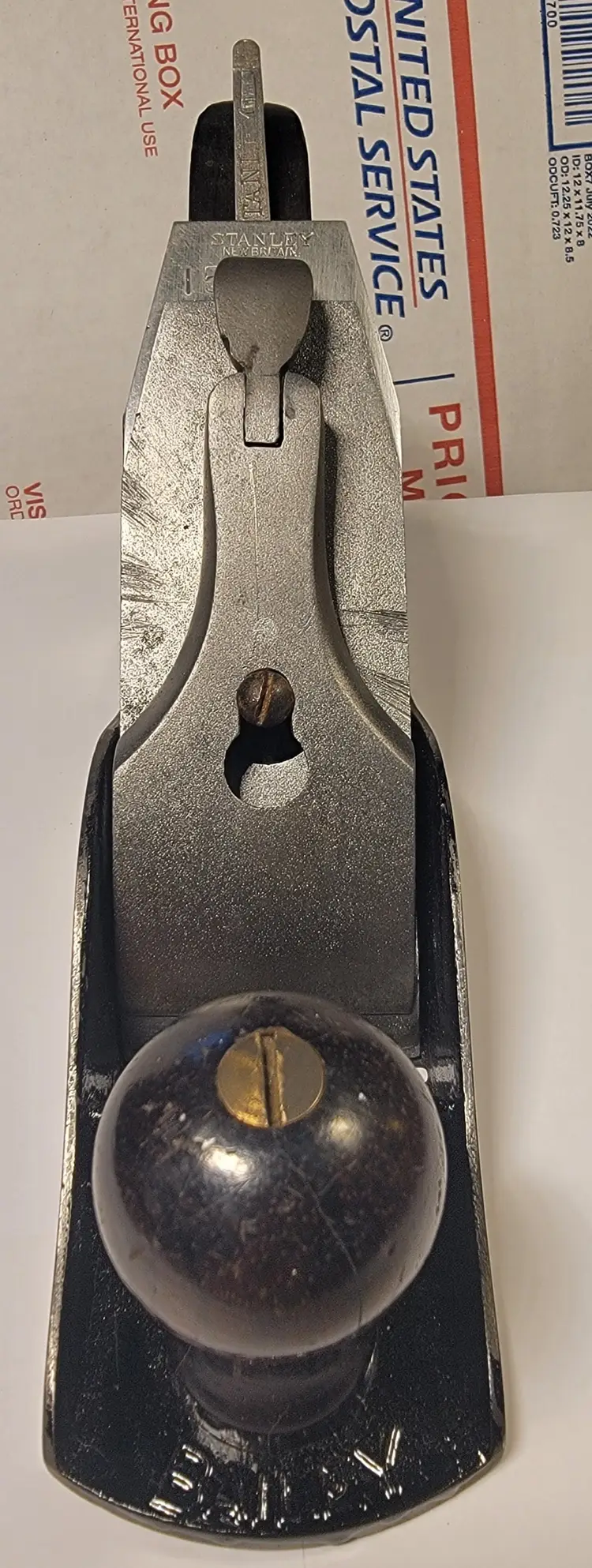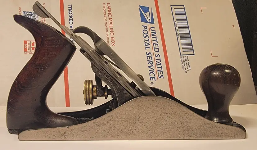Up for sale is an outstanding Stanley #4 type 11 hand plane . This one has a smooth bottom and shows the V logo iron. I have sharpened the iron going through the grits up to 8000. I have also re-Japanned the plane using Stanley's factory recipe and baking it 5 times on low heat to set the Japanning. I have flattened the sole and cleaned up the sides. The beautiful dark rosewood tote and knob are in great shape and show their original patina.
