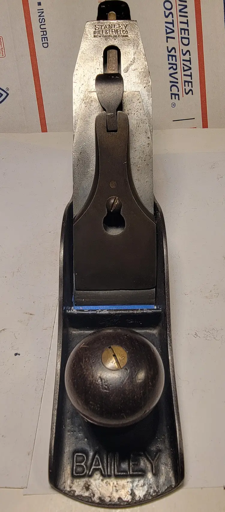 Up for sale is a super nice Stanley #5 type 11 hand plane. This one has a smooth bottom and it is flat. I Believe this is a fairly early model as it has the T logo iron, the low front knob and the barrel nut on the bolts. I usually will strip these old planes of their Japanning and re-Japan them, but this one has about 98 to 99% Japanning left on it so I didn't touch it, missing just a bit on the heel and toe. I have sharpened the iron going through the grits up to 8000. Looking at the plane I don't think it has seen much use. The iron is almost full length and in great shape with a strong logo. Most of the Japanning is still there and the sole doesn't show much wear. The rosewood tote and knob show there original patina. The tote does have a nicely repair crack and the knob is crack free and looks great. These old planes don't come much nicer.