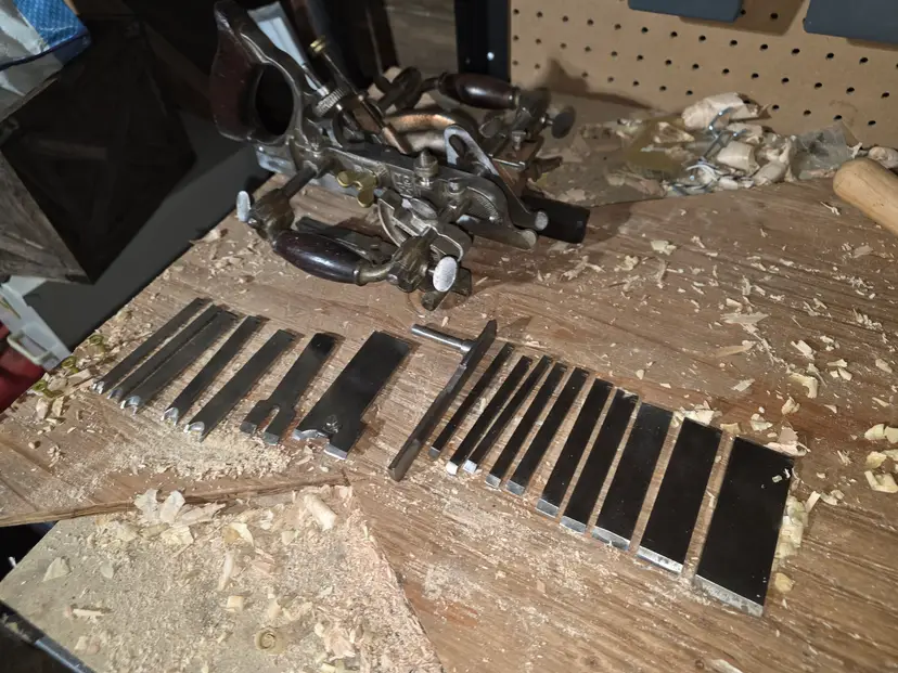 The King of Planes. Stanley 55 in great shape. Includes 16 irons.