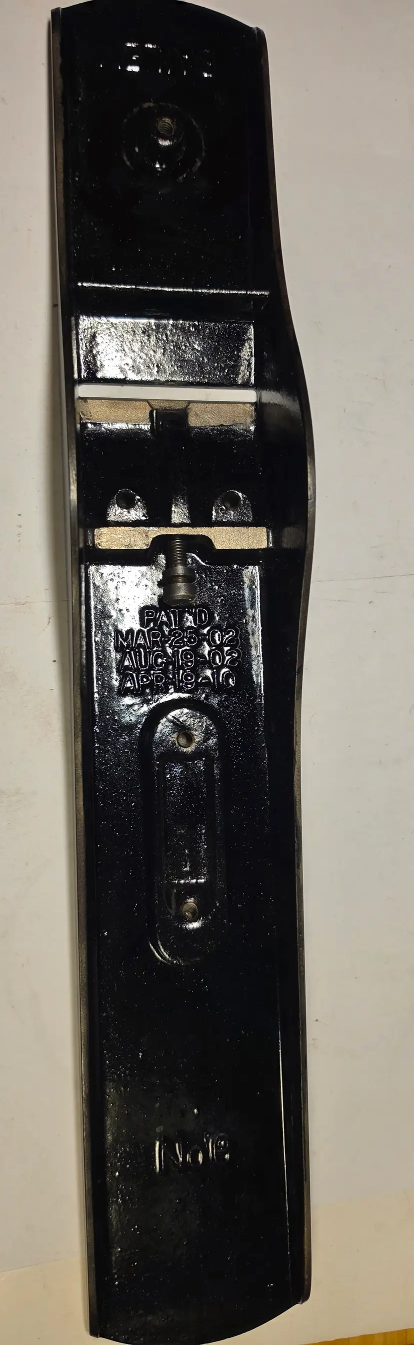 Up for sale is an outstanding Stanley #6 type 11 hand plane. I say it's an early type 6 because it has the T logo iron, the low front knob, and the brass barrel nut on the bolts. This one has the corrugated sole, which is preferred by many woodworkers because of the lower friction on the planeing surface. The sole is flat and without any pitting or major marks. I have re-Japanned the bed using Stanley factory recipe of baking it and adding two coats of brushed on Japanning and I bake it 5 times to set the Japanning. I looks great and is hard as a rock.I have also sharpened the iron going through the grits up to 8000. The rosewood tote and knob show their original patina. The tote is crack free with a ding on one side. The knob has a hairline crack the is hard to see without a magnifing glass. All in all a great type 11 ready to go to work in your shop or display with your collection.