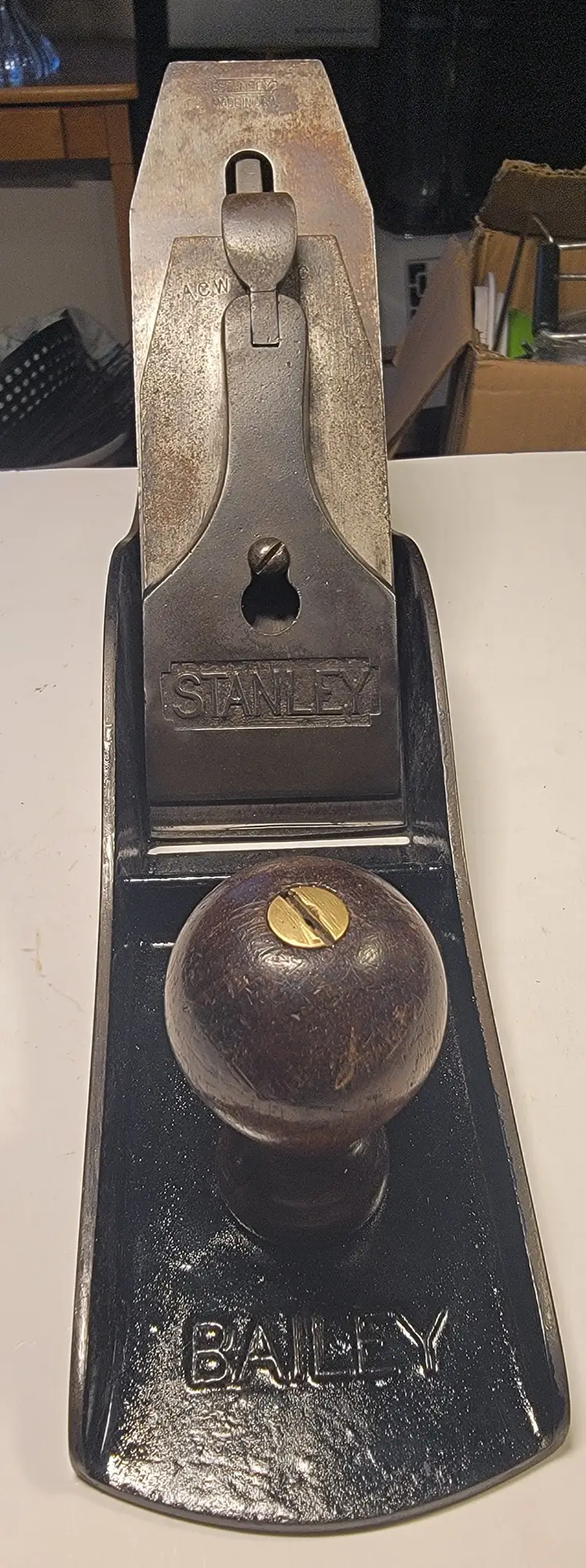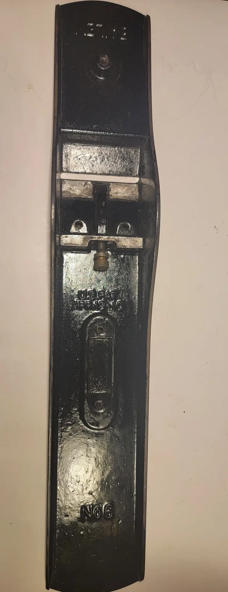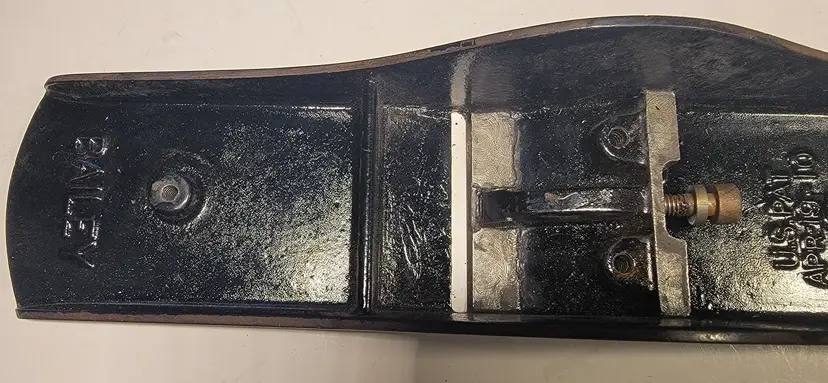 Up for sale is a super nice Stanley #6 type 13 hand plane. This one has the corrugated sole. The Japanning was pretty spotty on it so I stripped it off and re-Japanned it using Stanley's factory recipe and baked it 5 times and I think it looks great. I have flattened the sole and cleaned up the sides. I have also sharpened the iron going through the grits up to 8000. The iron has the BB logo, the one that came with it was used up. The rosewood Tote and knob show their original patina. The tote is as nice as I have ever seen. It doesn't have a mark on it. The knob has a small crack at the base that does not go up very far, maybe 1/2 an inch. Really nice 100 year old plane.