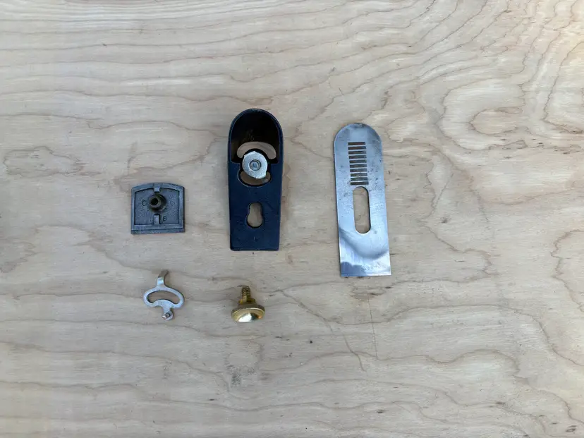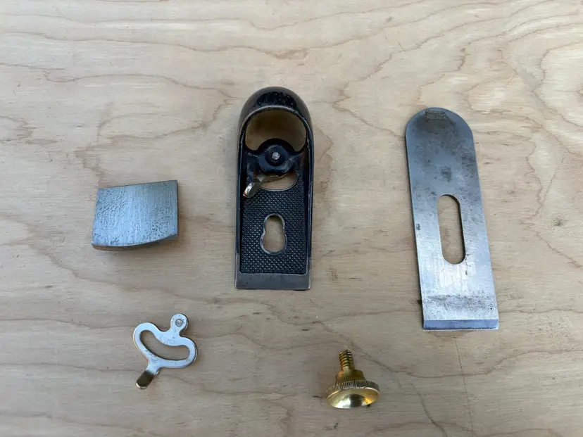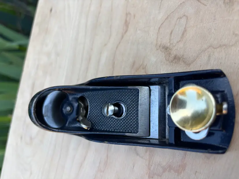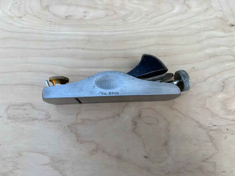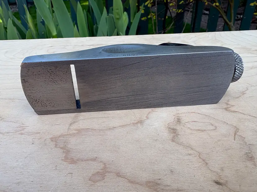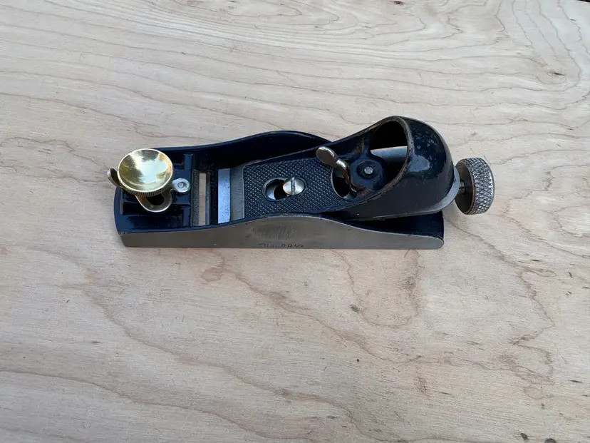 Stanley 60 1/2 low angle block plane. 6" long not counting the adjuster in back with a 1 3/8" iron. Has adjustable mouth. Midnight blue from the 1960's. Cleaned and bottom flattened. Iron is sharp. It's ready for work. Very hand plane around the shop or toolbox.
