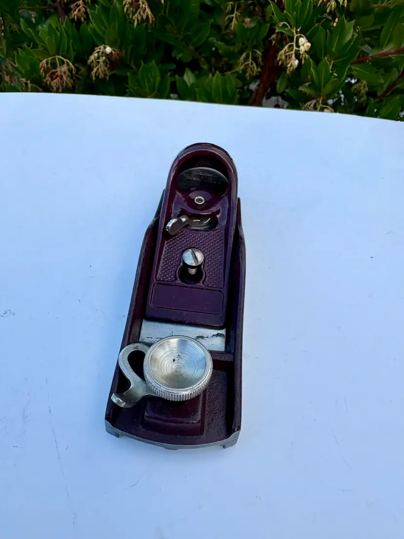 Stalney 60 1/2 low angle block plane with the adjustable mouth. The low angle and adjustable give great flexibility - narrow mouth for challenging grain, wider mouth if you are doing heavier removal. I flattened the bottom and sharpened the iron to fully test it. Works great. Tuned and ready to go. Iron seems barely used and very close to full length.