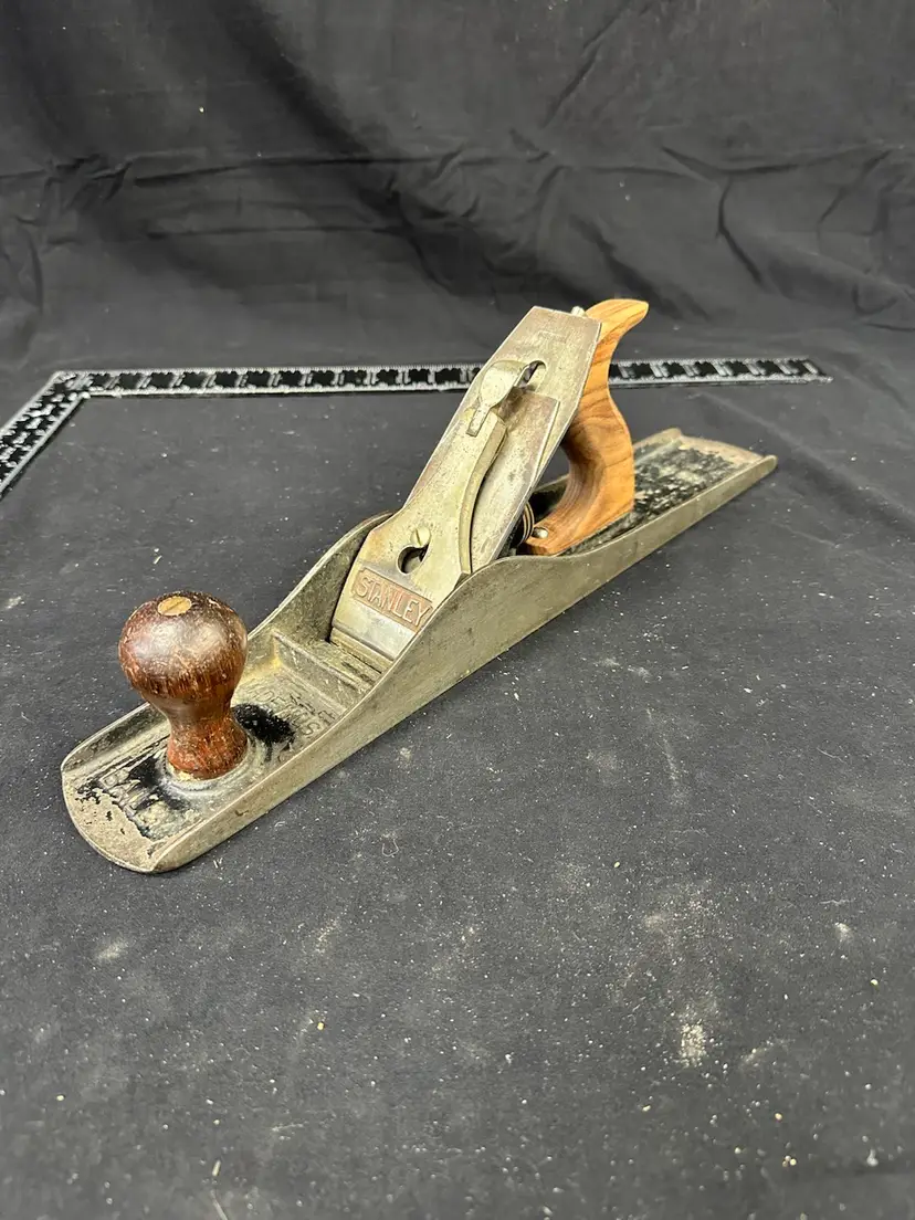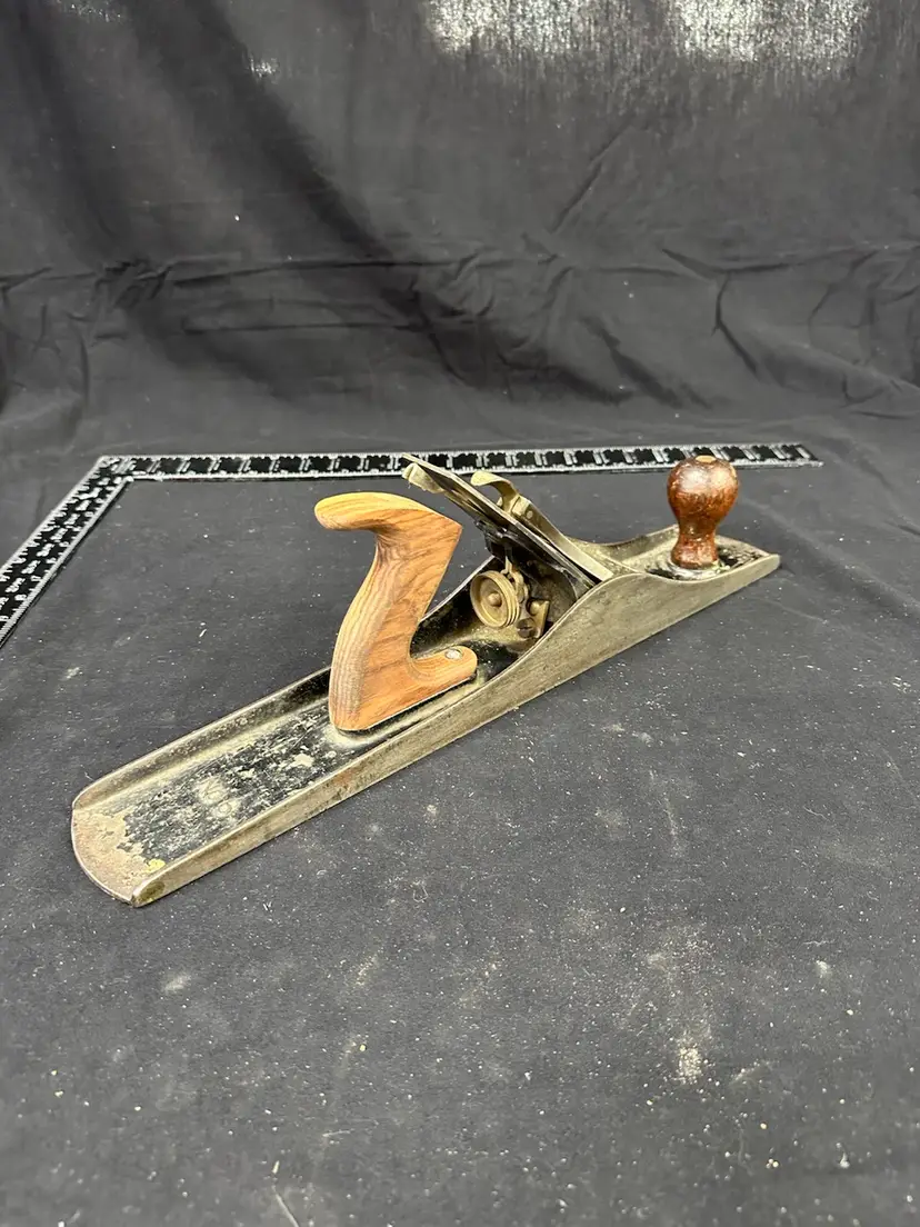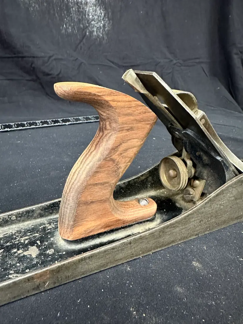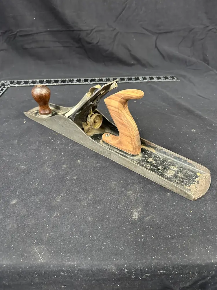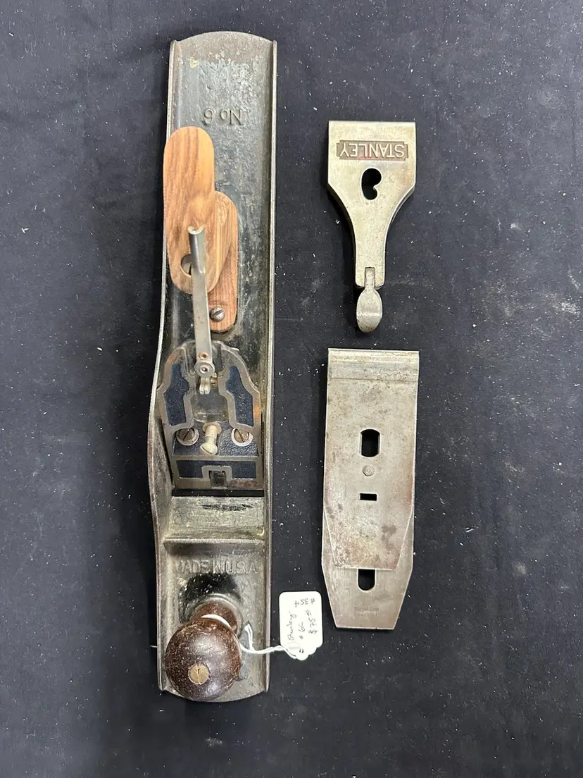 Stanley #6c fore plane in good worker condition. This plane comes from a collection of planes used in a hand tool woodworking school where it was in daily use. The rear tote has, at some time in the plane’s life, been replaced with a new rosewood handle. To reduce shipping costs the front tote will be removed for shipping.