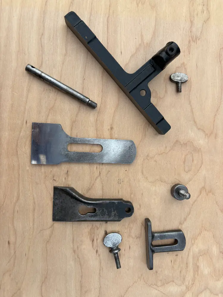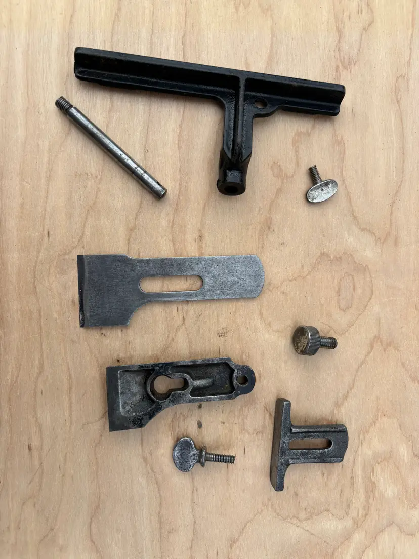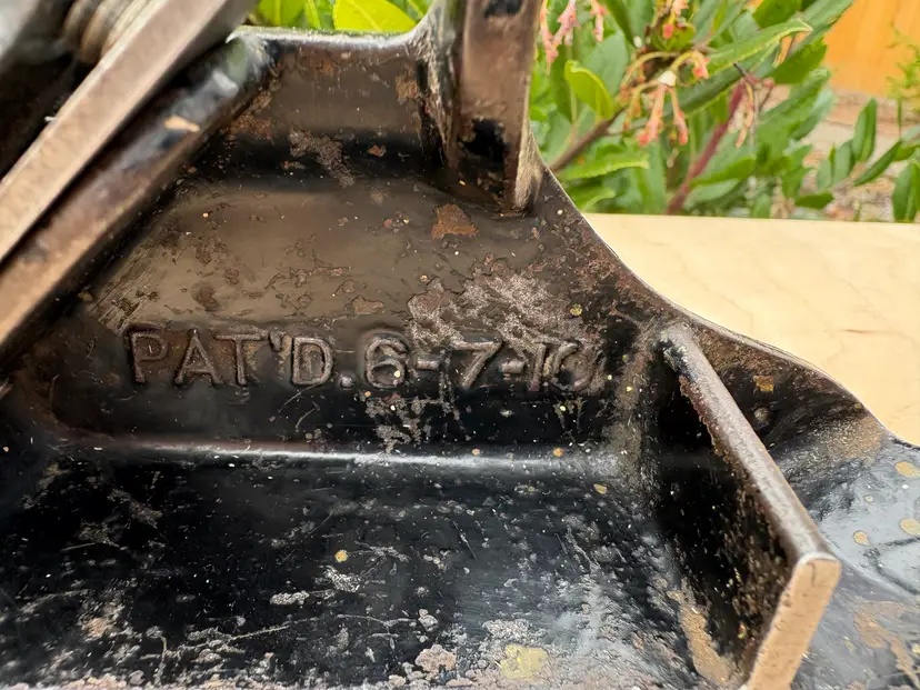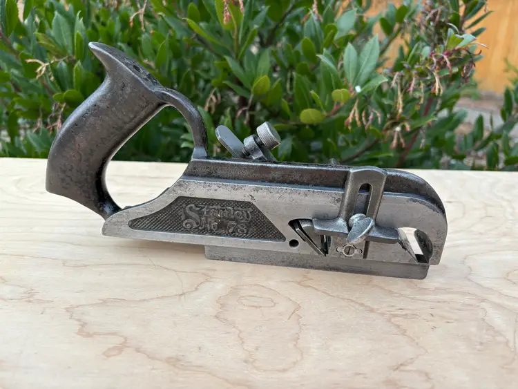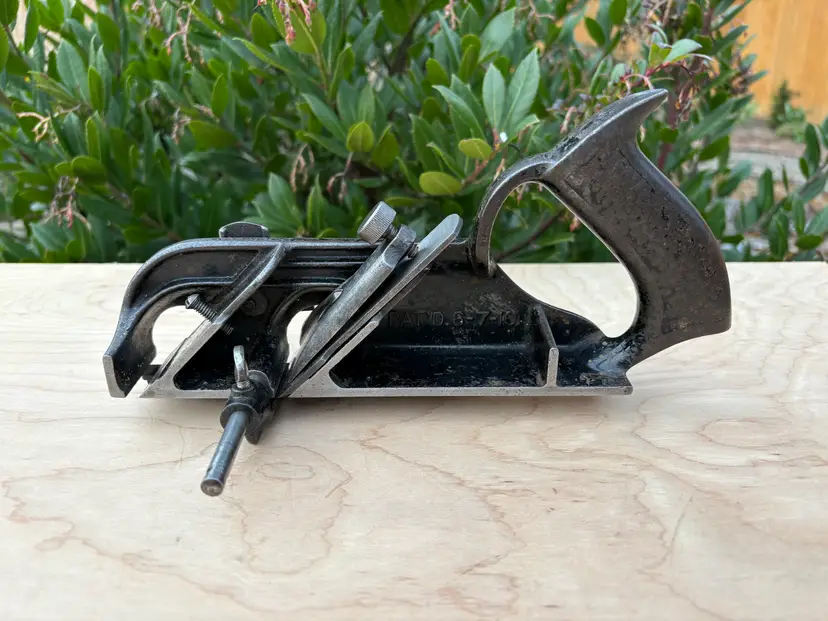Stanley No 78 rabbeting/fillister plane with fence, depth stop and spur/nicker. V logo iron and the 1910 patent date place it as being made in the 1910's. This is same era as the Stanley Bailey Type 11 bench planes. Iron is sharp with lots of length. This plane has seen a working life in its 100+ years. And it's ready for a few more lifetimes of making shavings. The japanning is about 50% overall with the typical seemly mandatory random paint splatters.