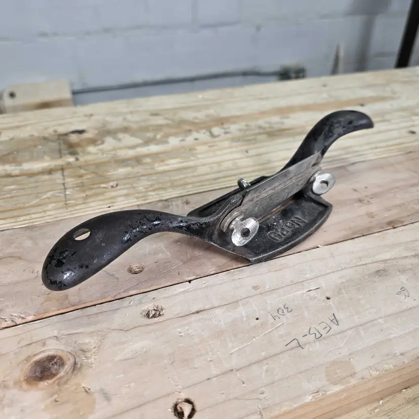 This scraper is in original condition and dates back to 1910. It has light rust, but the bare metal is clean and rust-free. The original japanning is about 50% intact. The blade is short, but still useable.
