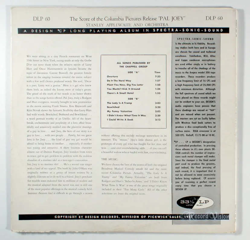 Pal Joey, by Stanley Applewaite, is an orchestral studio recording featuring instrumental interpretations of songs from the classic Rodgers and Hart musical Pal Joey. Conducted by Applewaite with his orchestra, this version stands out as a budget-label release typical of the era, offering straightforward arrangements without vocals in an easy-listening style. A unique aspect is its timing around the popularity of the musical's film adaptation, providing an accessible orchestral tribute to the score. Fan-favorite tracks include I Could Write a Book, and The Lady Is a Tramp, which highlight the enduring appeal of the original compositions. Historically, it reflects the mid-century trend of covering Broadway shows in instrumental formats for home listening.
