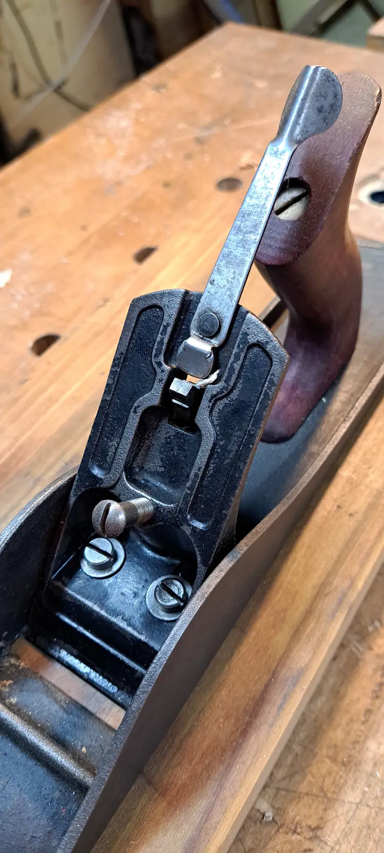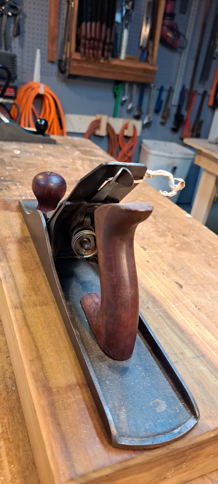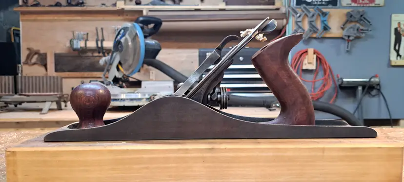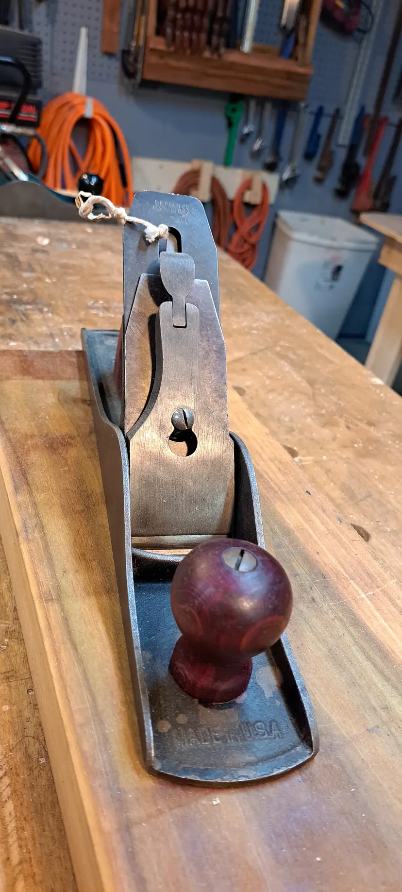 Stanley Defiance #5 size Jack Plane. I think this is an early type since it has an actual frog unlike the later ones that have a fixed frog. I think this can be tuned up to make a nice user plane. I thought about keeping it just because it's a #5 size that I rarely see, but I have to many planes as it is. Part of a collection that I bought that I wanted some stuff out of, the rest is just collecting more dust...