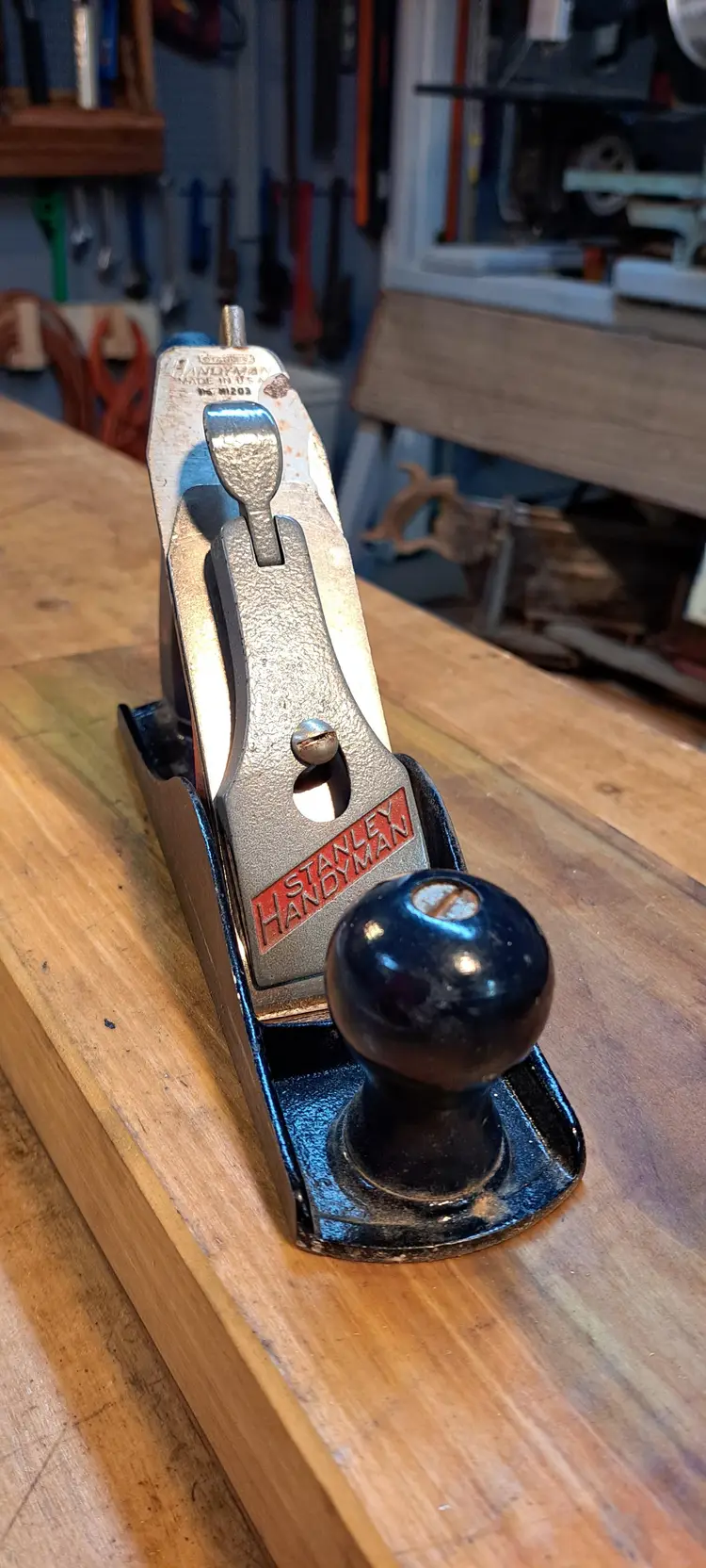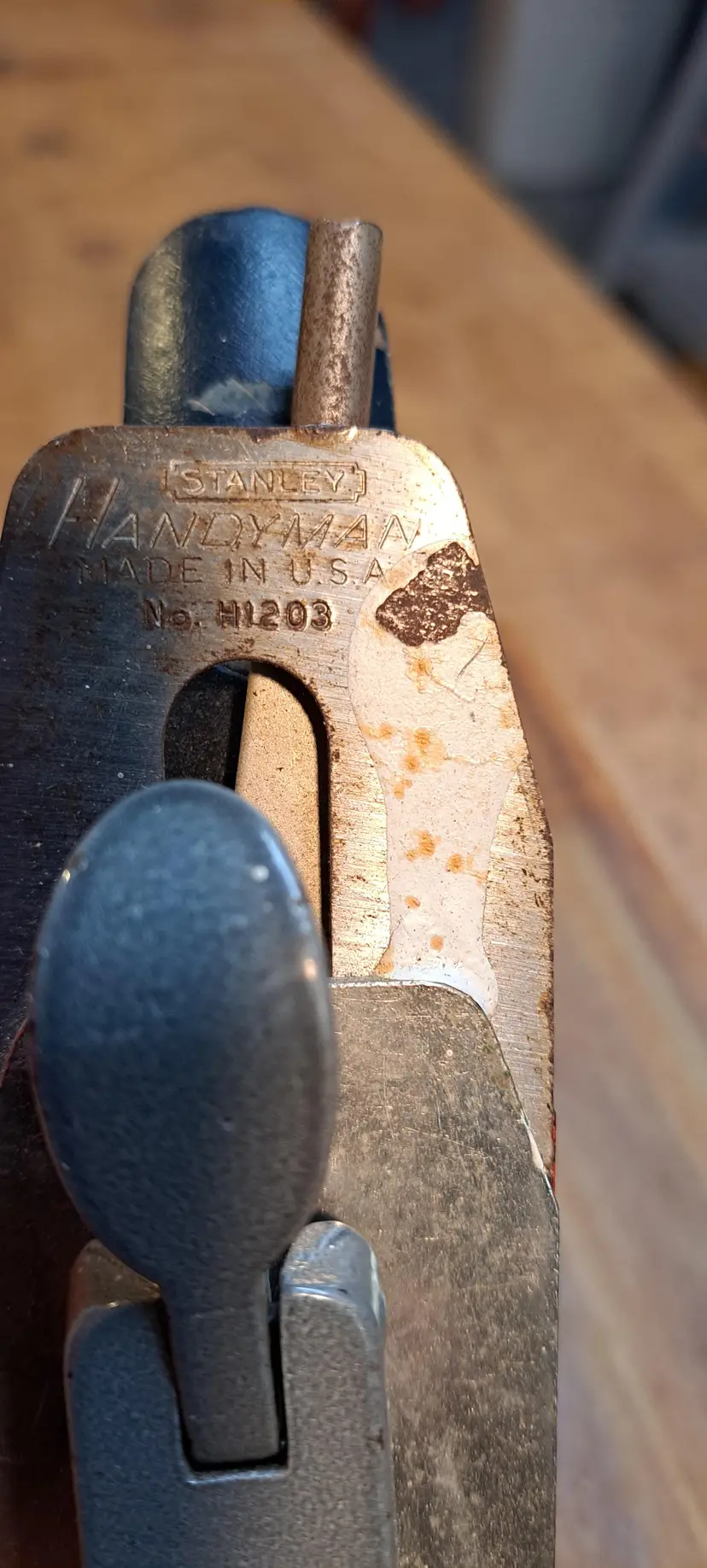Stanley Handyman 1203 (#3 sized) Smoothing Plane. Handyman tool line replaced the Defiance line in the lae 50's and was produced up till the early 70's. They where homeowner grade tools, but do make a good user plane with some tuning. I have not found any info on how to date these tools yet, but I think this may be from the 60's, maybe later 60's. But I am just guessing. Has some paint on it that I should had cleaned off before listing, but...