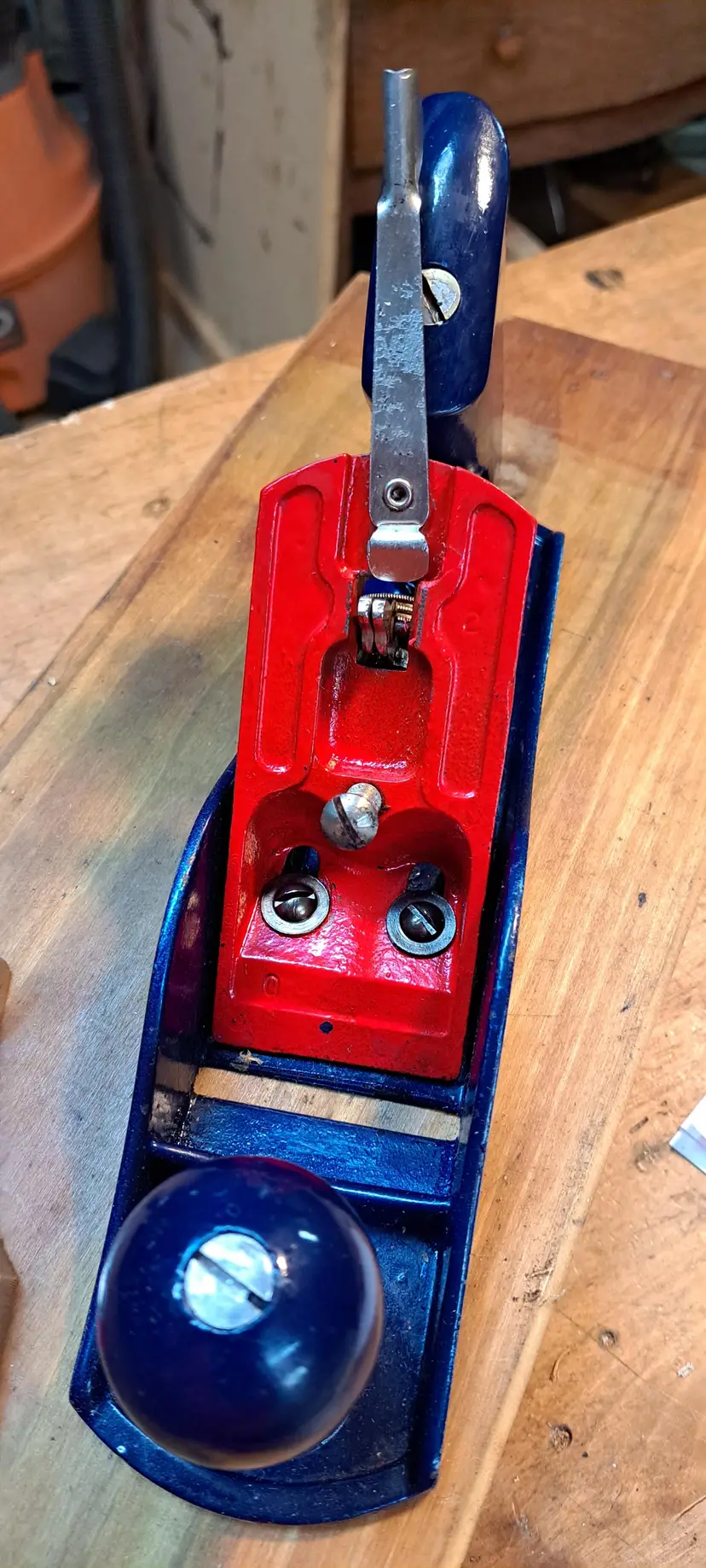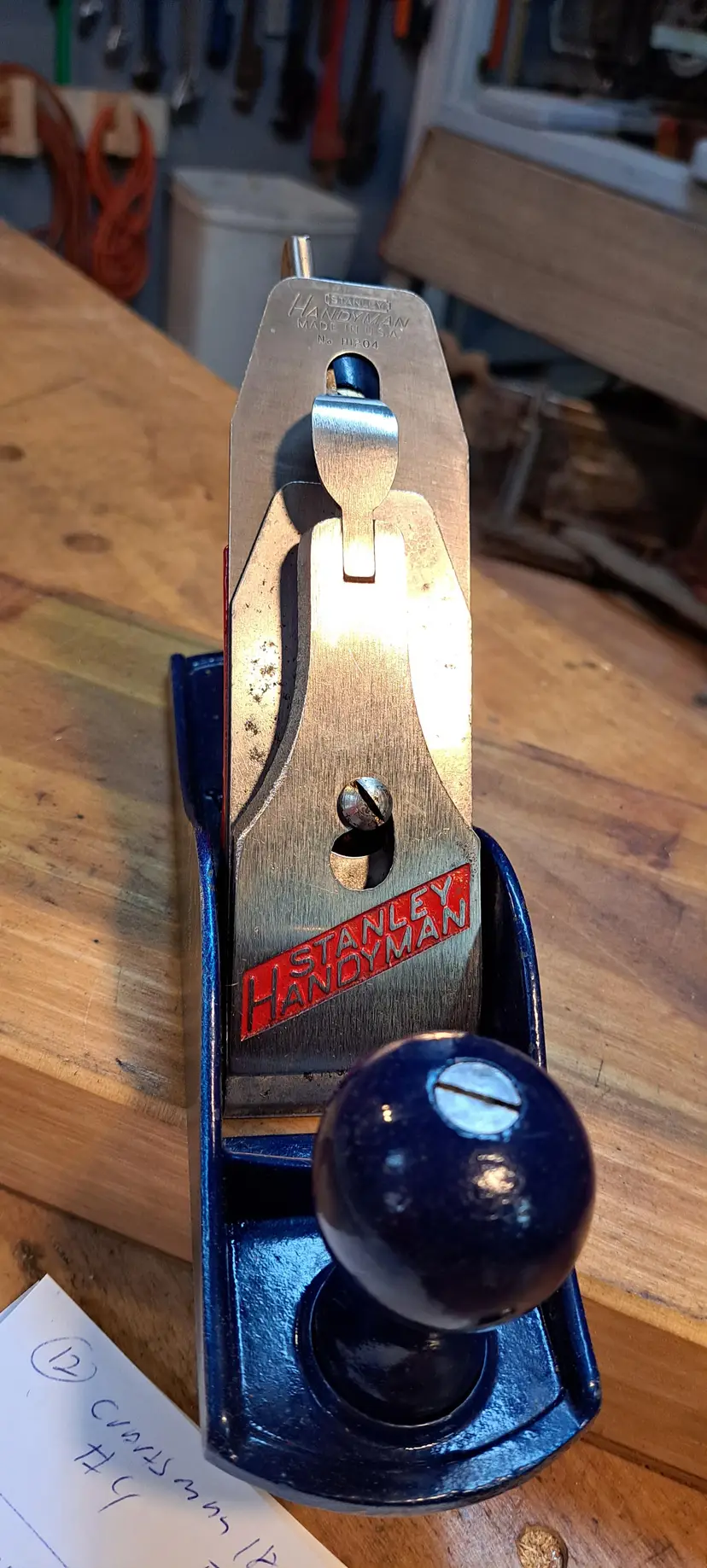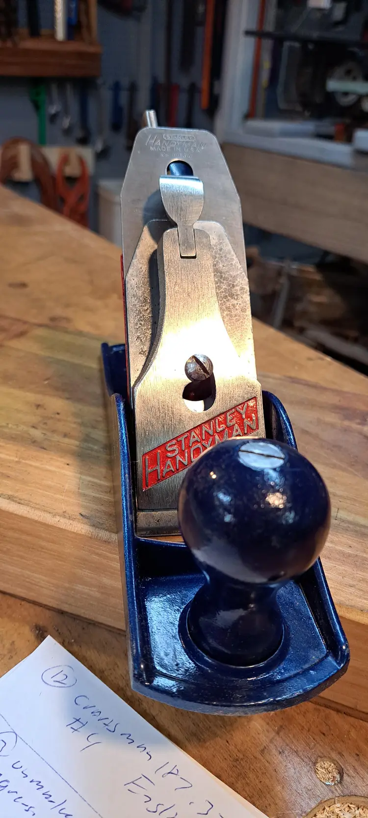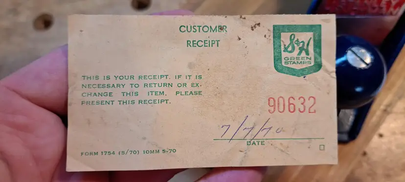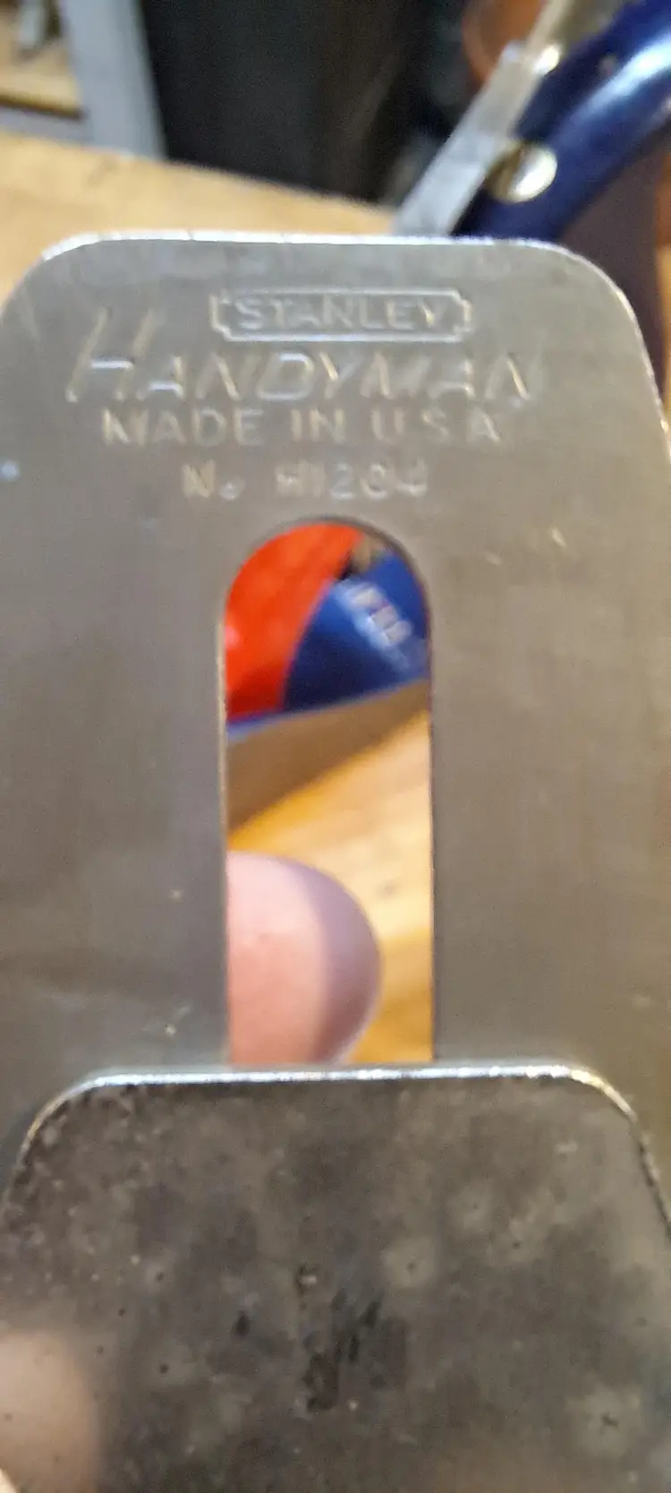 WOW, never thought I would run across this! I should keep it, but I just have to many planes and other tools. Why am I excited? When was the last time you saw anything in an original S&H Green Stamp Box? 1st, this is a Stanley Handyman H1204 (#4 size) bench plane that I think it new, or lightly used. Handyman was the home owner too line from about 1957-mid 70's. Now, if you do not know what S&H Green Stamp Store was, check Wikipedia. But in short is was a form of rewards for buying at different business in the Midwest and southern USA until the early 1980's. You bought items and you got so many green stamps per $1.00 spent. You in turn put the stamps in a booklet to collect enough to use at the official S&H store. You could not by anything in the store expect with the Green Stamps, you did have to pay a little, but I think that was just the sales tax. I do not remember now, I was a kid still, but do remember going into the stores with my mother and grandmother here in KY.