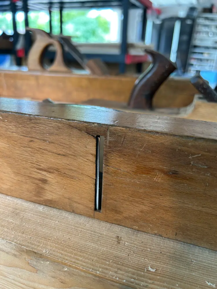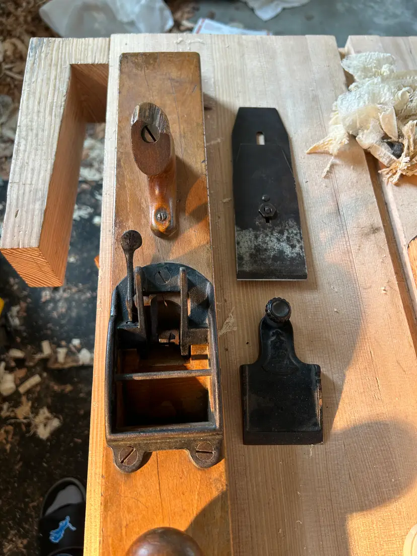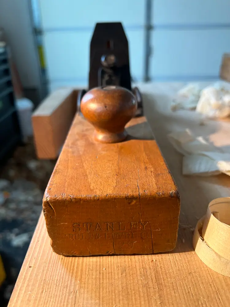 Great condition Iron is sharp and ready to use Takes nice shavings 20” Made as a fore plane but long enough to be used as a jointer Handle is broken at the top Special adjustment mechanism