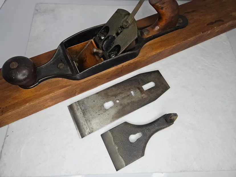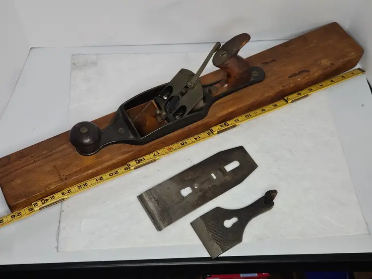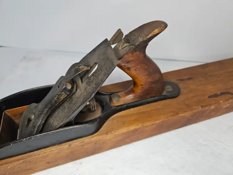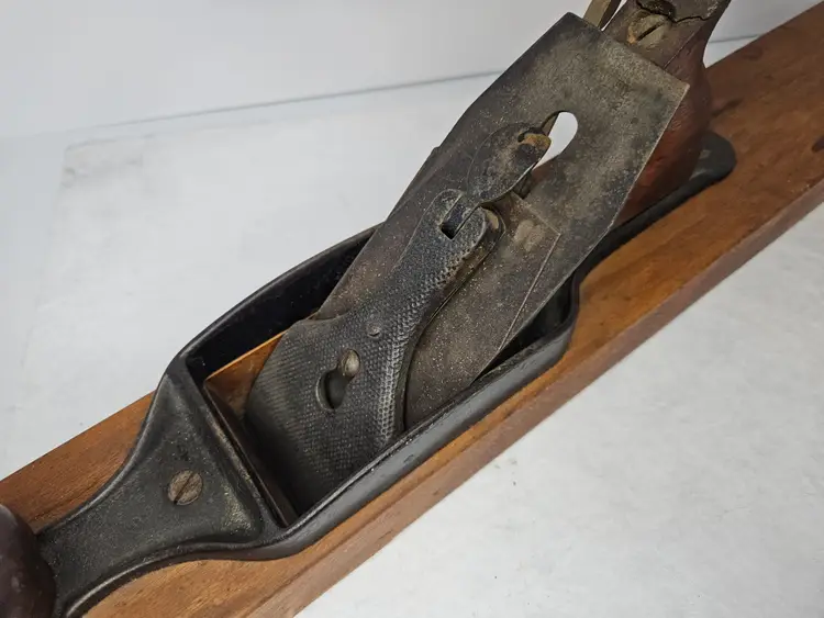Offering a Stanley No. 32 transitional in good condition. Only apology is the horn on the tote is cracked. Will clean to make a nice worker. 26 in length.