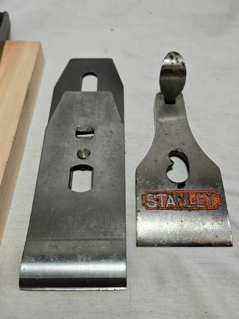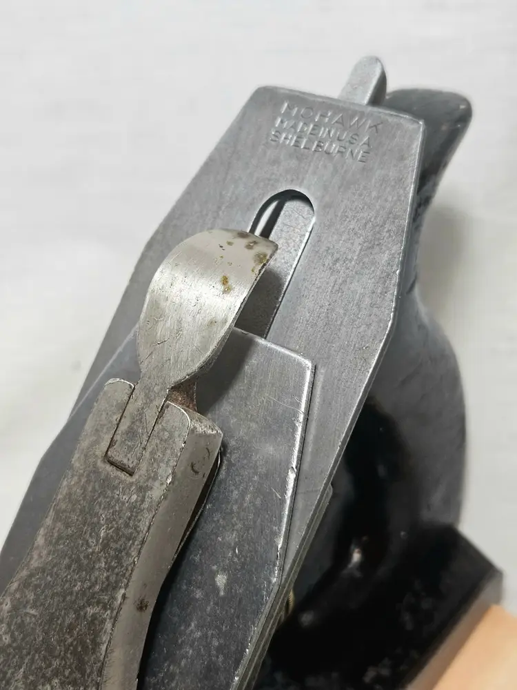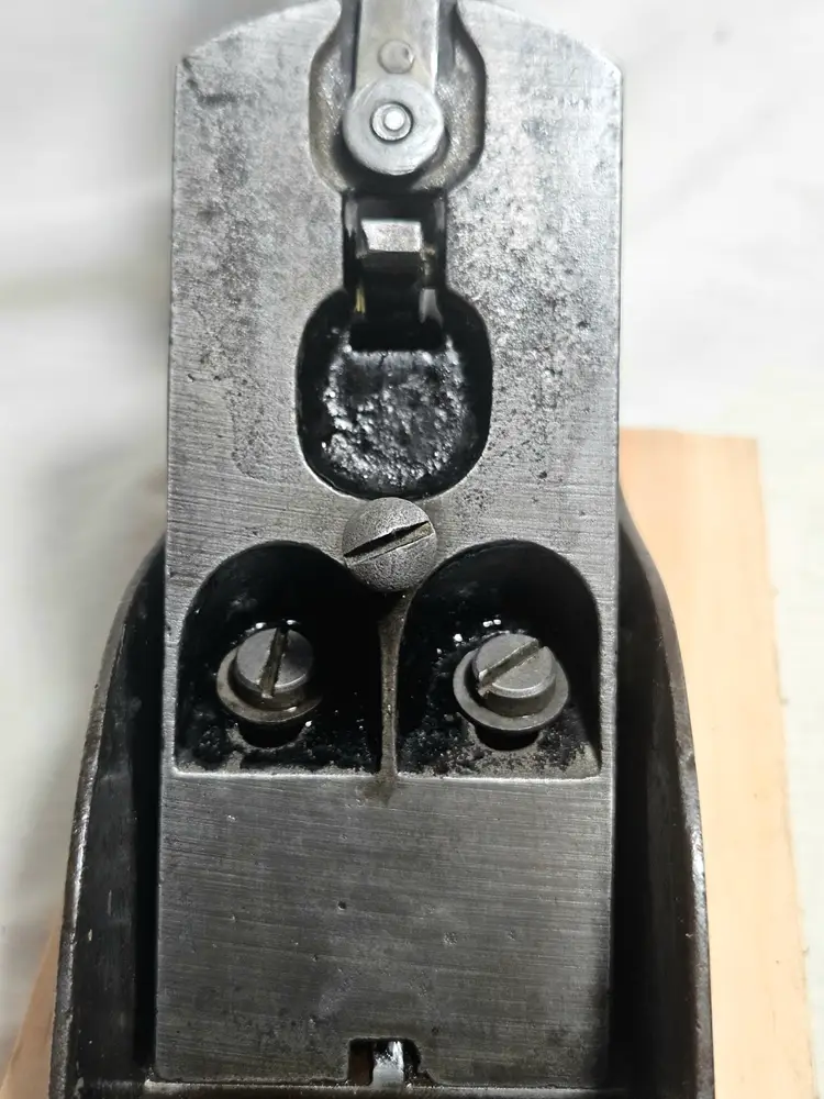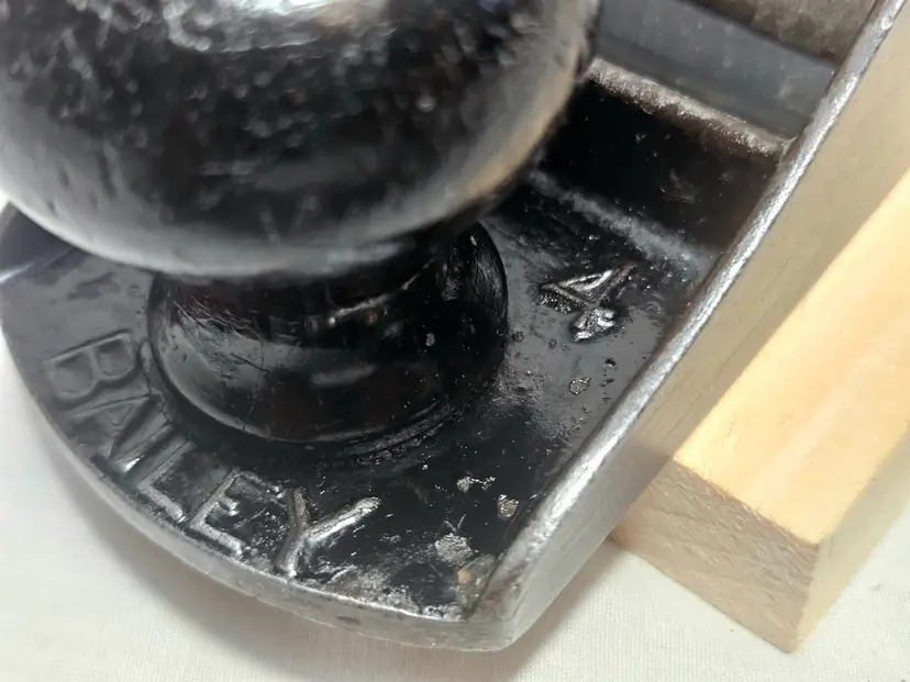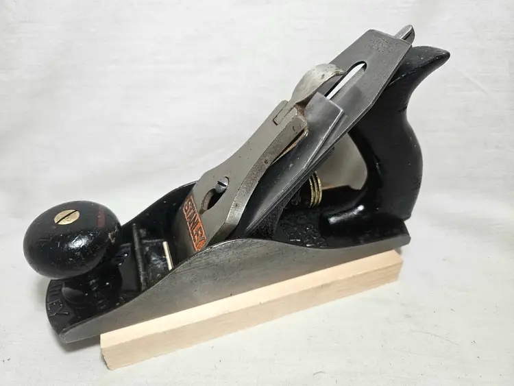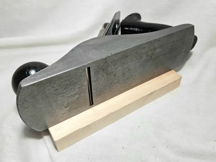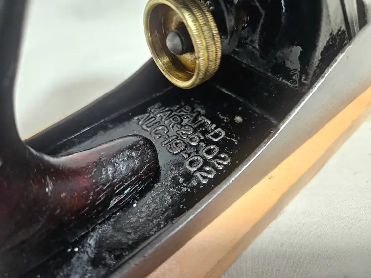 Type No. 9 body with 2 patent dates behind the frog. The iron and chip breaker are a replacement, but fit the plane perfectly well to my liking. Solid wood furniture with normal wear and no visible cracks. Kidney hole lever cap. It may be a non-original plane as far as parts, but it will make an excellent worker.