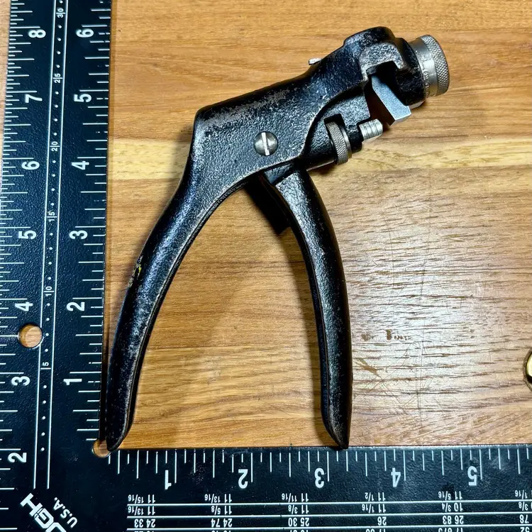 Excellent condition Stanley No. 42 Saw Set with partial decal on the pistol grip handle. All parts move freely and springs are tight. No issues other than some minor finish loss in some areas from light use. "Made in USA" and "No. 42" stamped inside handle. See pictures for details. Let me know if you have any questions.