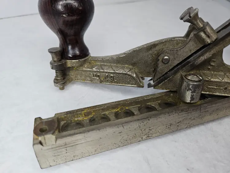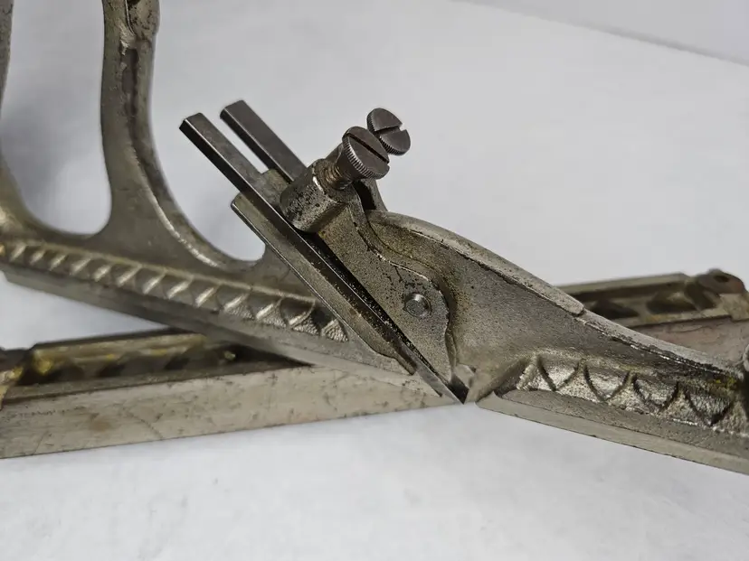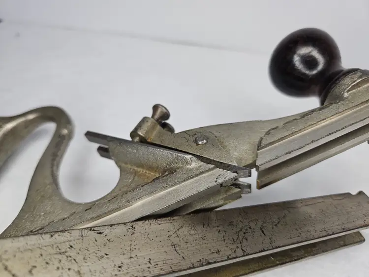 Complete with both cutters and excellent rosewood knob. The nickel plating remains present with typical age-appropriate wear. All components are intact, making this a solid candidate for use, restoration or your collection. Similar to the No. 48, but for 1/2" to 3/4" stock. Not a plane you see everyday.