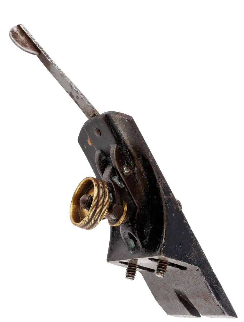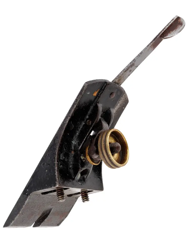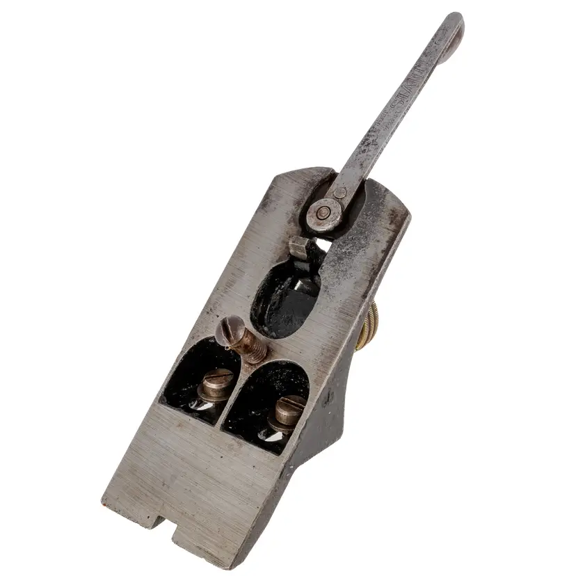 A Good original replacement frog assembly for a Stanley No. 4 or No. 5 smoothing plane. It is 2" wide. It was donated from a type 9 plane and will only fit a type 9 plane. There are cosmetic defects, but no damage. Everything works great. Whoever was in charge of putting the samp on the lateral adjuster, gave it 2 light stamps which gives it an interesting 3D text.
