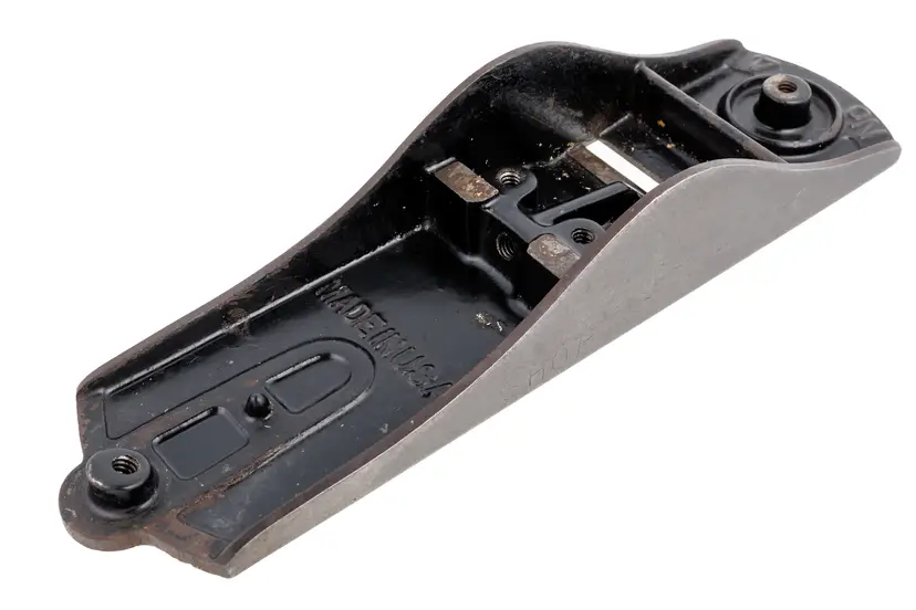 A solid type 16 Stanley No. 4C Smoothing Plane Body. It is a solid user with some wear and discoloration, but all issues are cosmetic. 90%+ japanning. There is some paint splatter. No damage. There is a "6" stamp on either side, as well as a "shop" stamp.