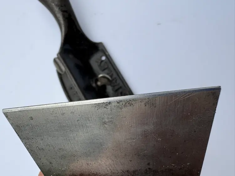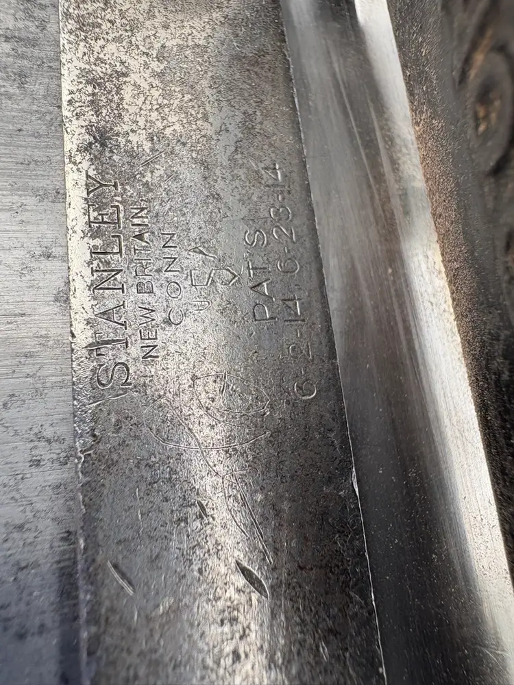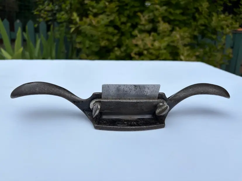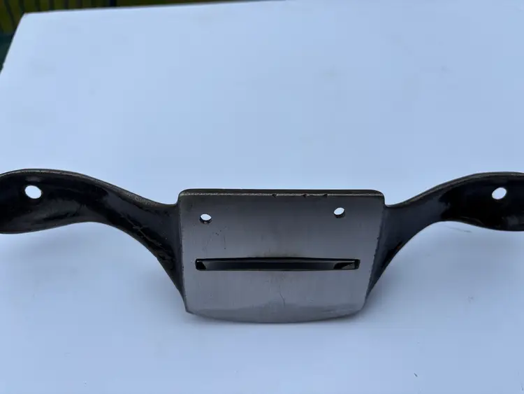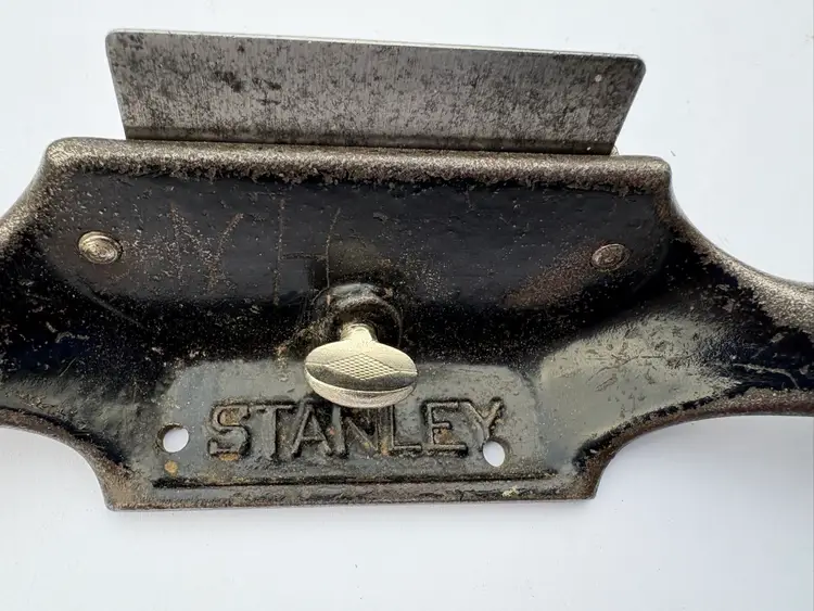 Stanley No 80 cabinet scraper plane V "Victory" trademark, 1912-1918, on the bar. Iron is a replacement and is ready. These scraper planes are great. Saves your hands compared to a card scraper. It holds the iron with some flex and keeps it away from your fingers as it gets warm. I have a couple so it's time for this one to go to its next owner.