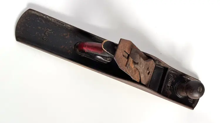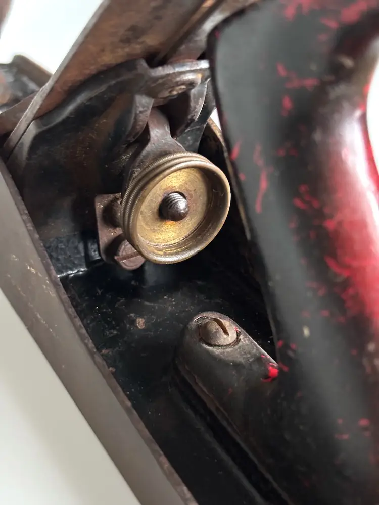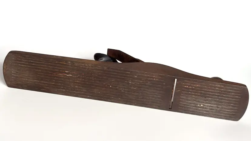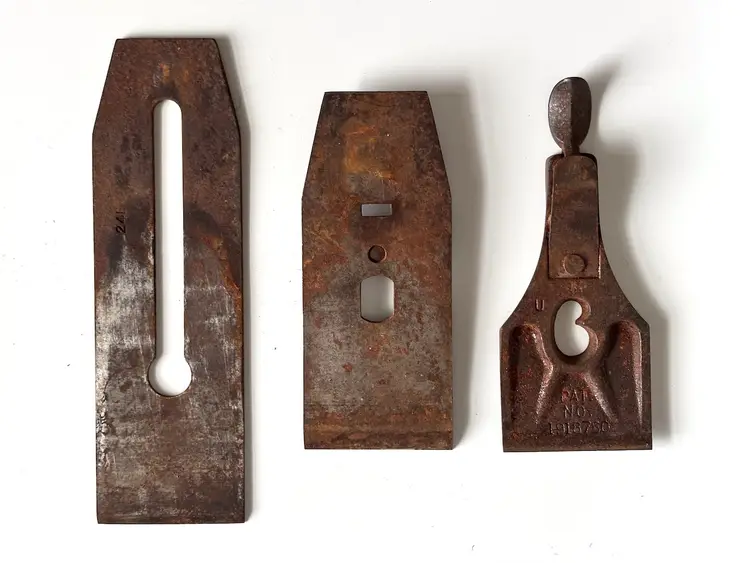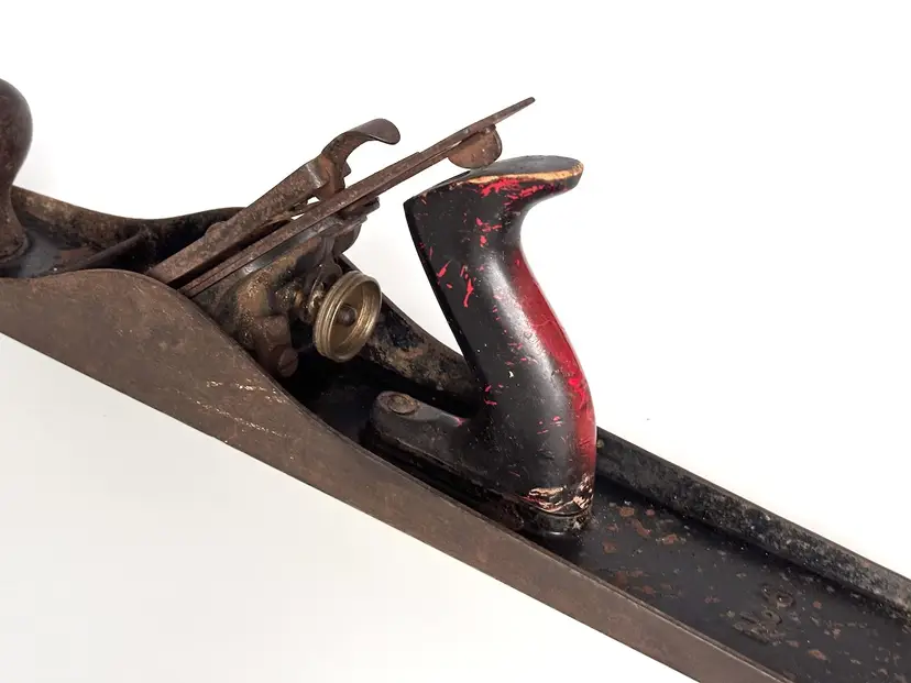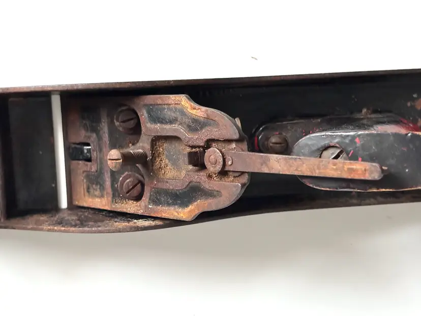Overall good condition for having lived in a shed for quite a while; no cracks or chips but with a fair amount of surface rust. All fasteners and adjusters are free except for the screw holding the frog adjustment tab. Currently has a replacement tote, and includes the original, which is broken. Iron does have some pitting where it meets the chip breaker and could stand to be replaced.