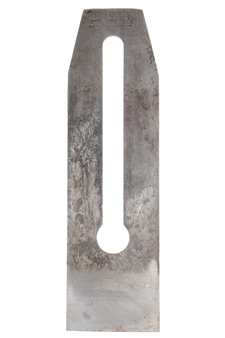 An original 2" wide replacement iron for Stanley's No. 4, S4, A4, 5, S5, A5, 604, 605, 24, 26, 35, 9 planes. It will work with any stanley plane that requires a 2" wide iron. It has the "S" trademark stamp, used only from 1907-1909. It is has a relatively clean and sharp bevel end, but will need sharpened for use. Plenty of life left at 7" long.