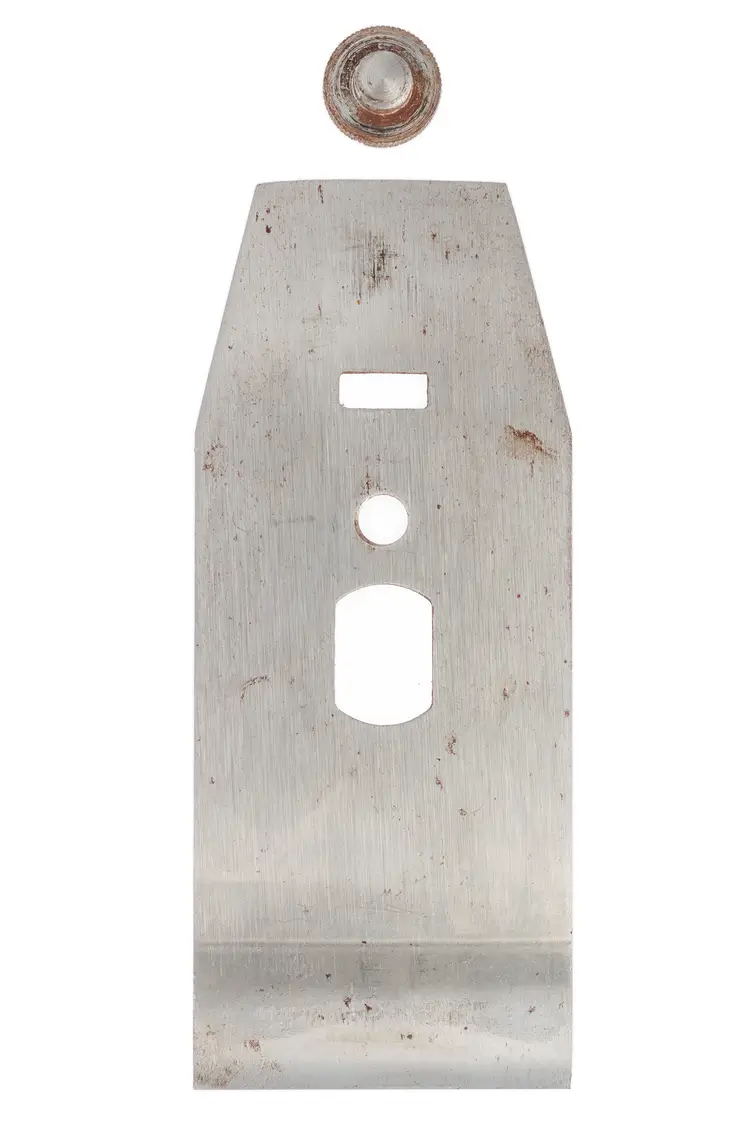 A Good Plus 2" wide cap iron (chip breaker) and screw for Stanley hand planes. It will work with any metallic Stanley-made plane that requires a 2" wide iron. It was salvaged from a type 19 plane but will fit earlier versions as well. No issues.