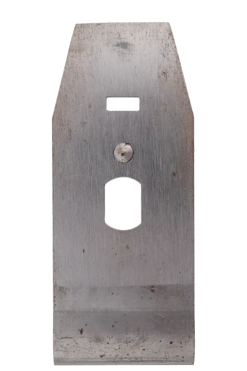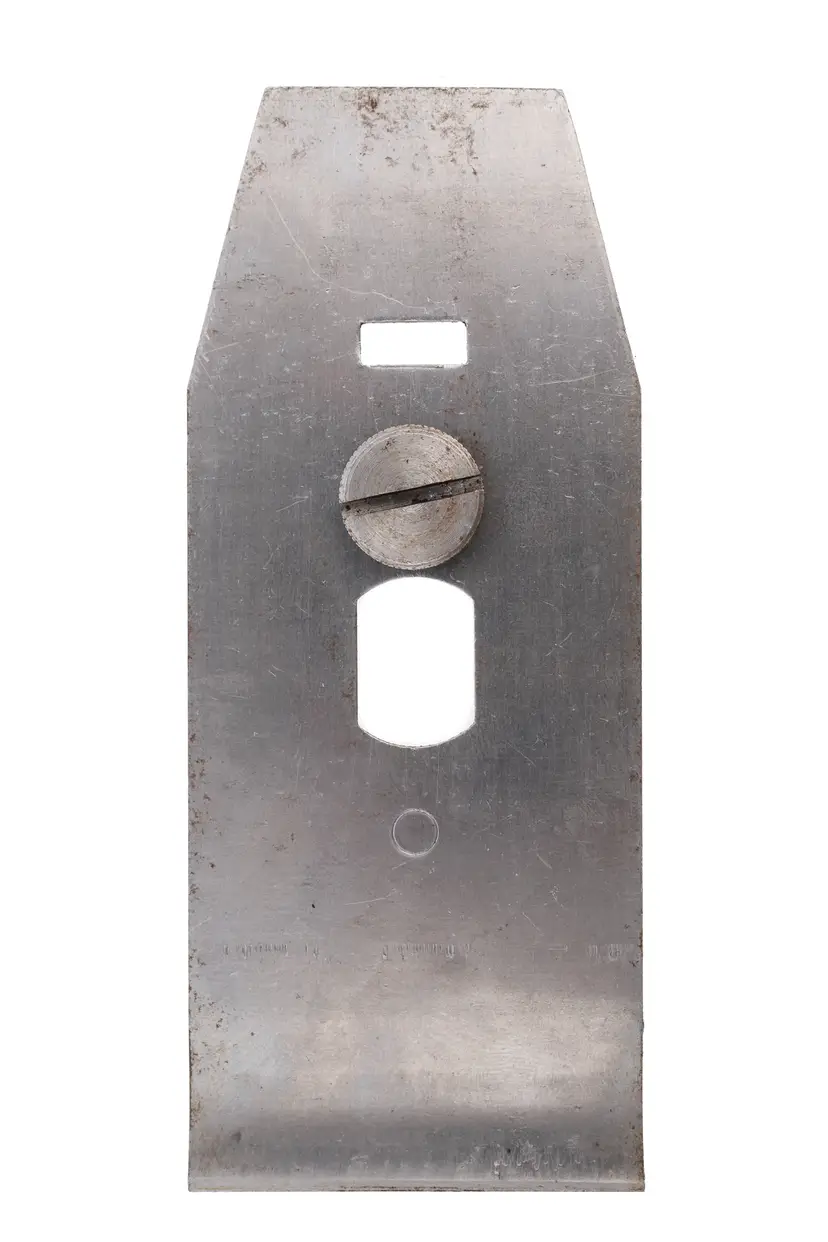 A solid 2" wide cap iron (chip breaker) for Stanley hand planes. It will work with any metallic Stanley-made plane that requires a 2" wide iron. It was salvaged from a type 19 plane but will fit earlier versions as well. There is some light corrosion/discoloration at the top, but no functional issues.