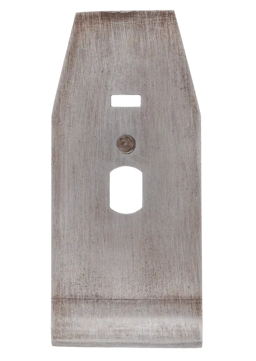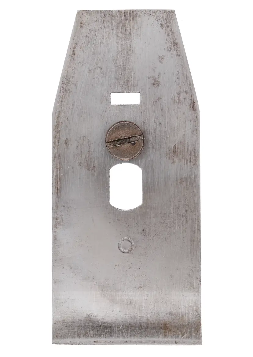 A solid user cap iron & screw for metallic planes that require a 2-3/8" wide iron, such as No. 4-1/2, 5-1/2 (post 1936 only), 6, 7, 604-1/2, 606, 607, A6, etc. It has some wear and looks like it was cleaned up with a wire brush, but is useable.