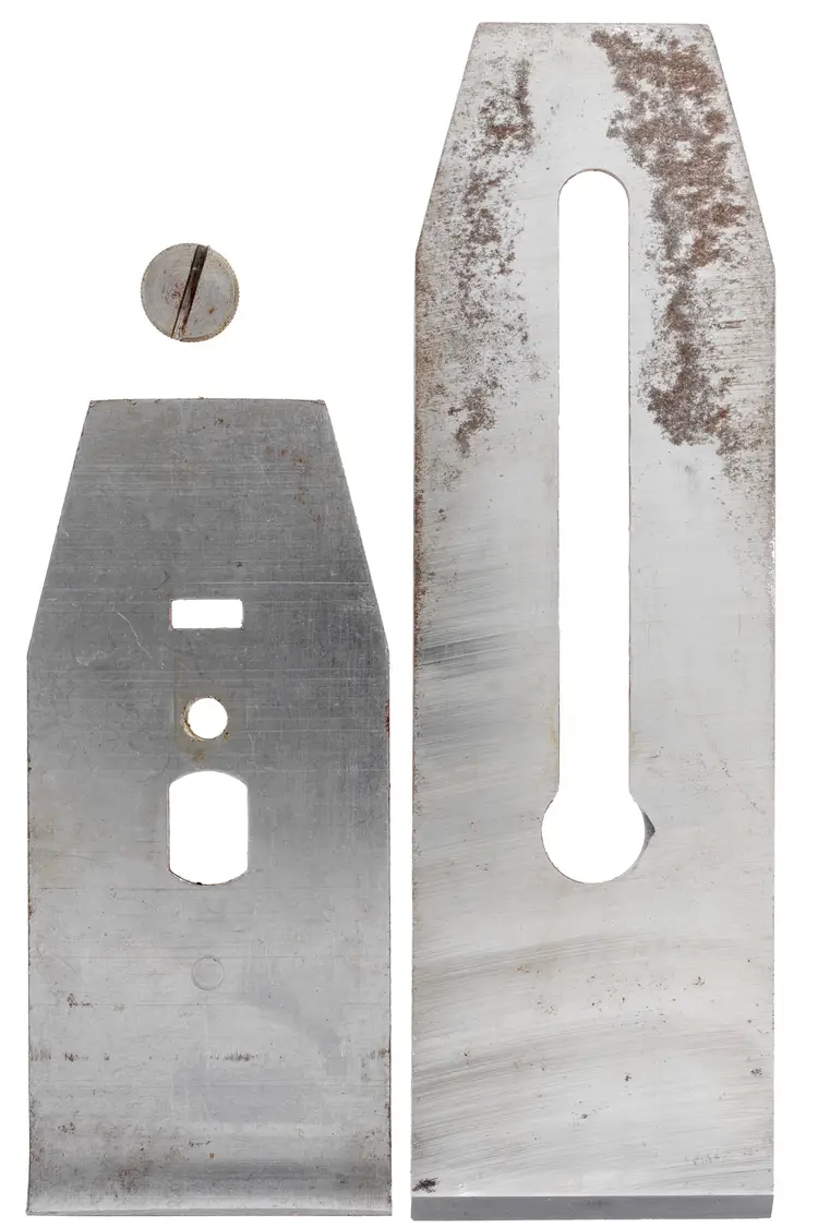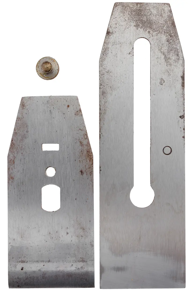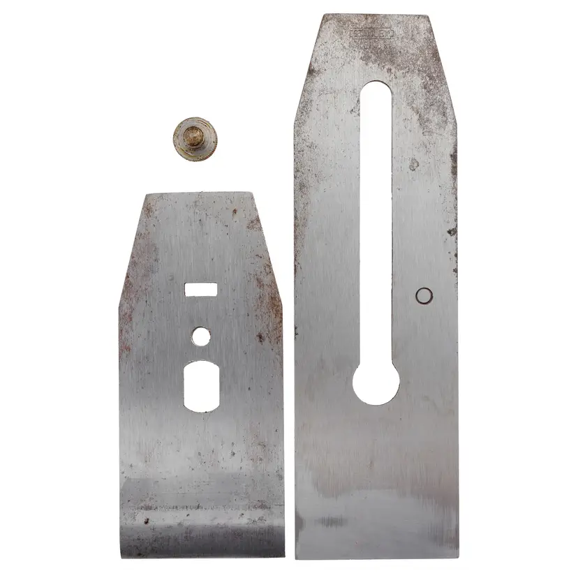 This is an original replacement Stanley plane double iron. It is 2-3/8" wide, which works with hand plane No's 4-1/2, 5-1/2 (post 1936 only), 6, 7, 604-1/2, 605-1/2, 606, 607, and 51. It has seen very little use and has been freshly sharpened on extra course diamond plates - final honing is left up to the new owner. Tons of life left at 7-7/8" long.
