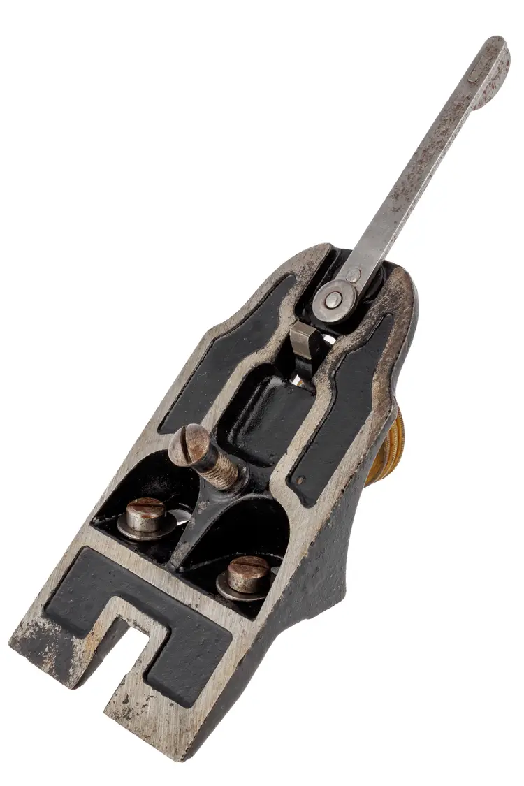 A Good Plus original frog assembly for Stanley metallic planes. It is a type 16 but will also work with a type 18 and 19 plane body. Minor wear with no damage. Works perfectly.