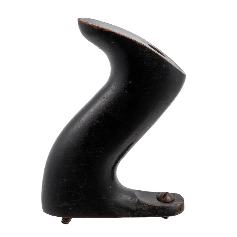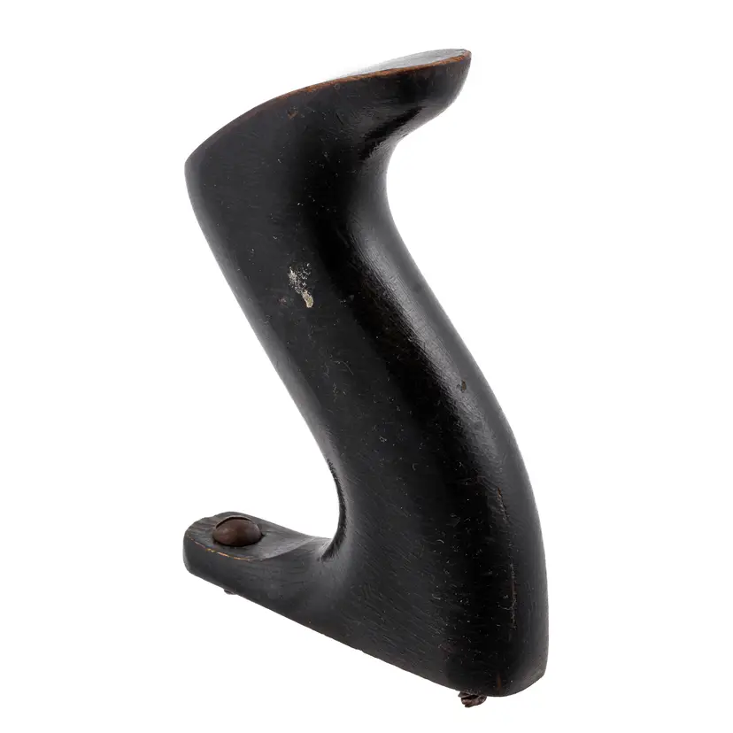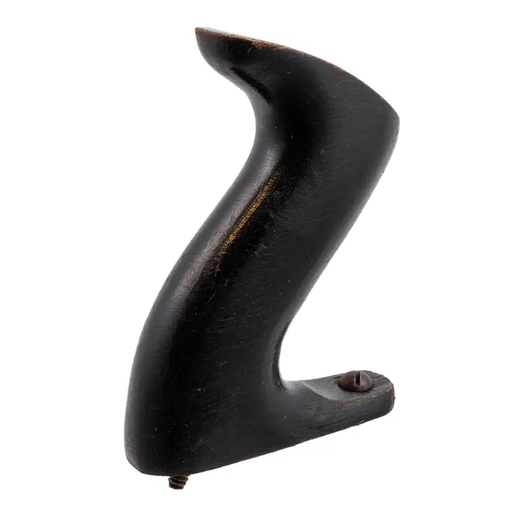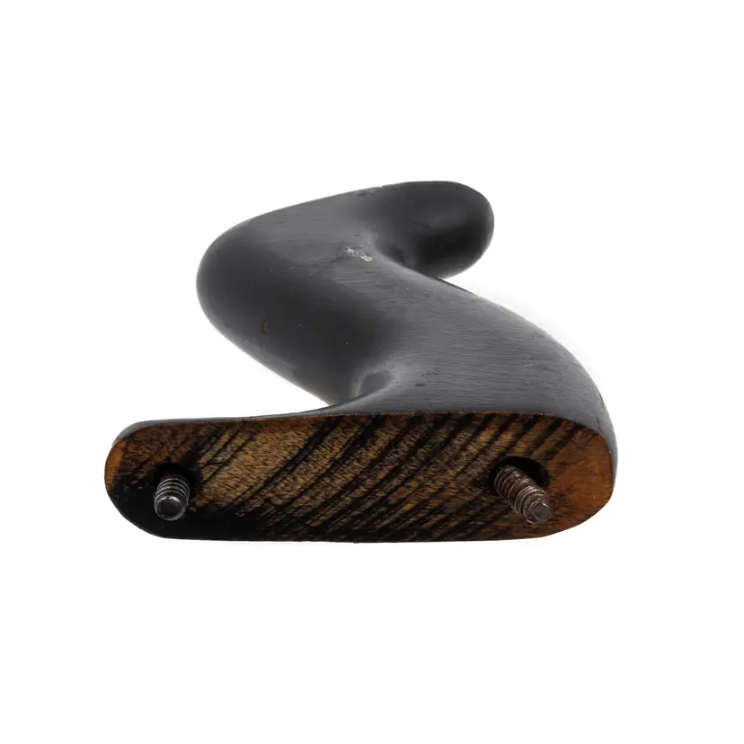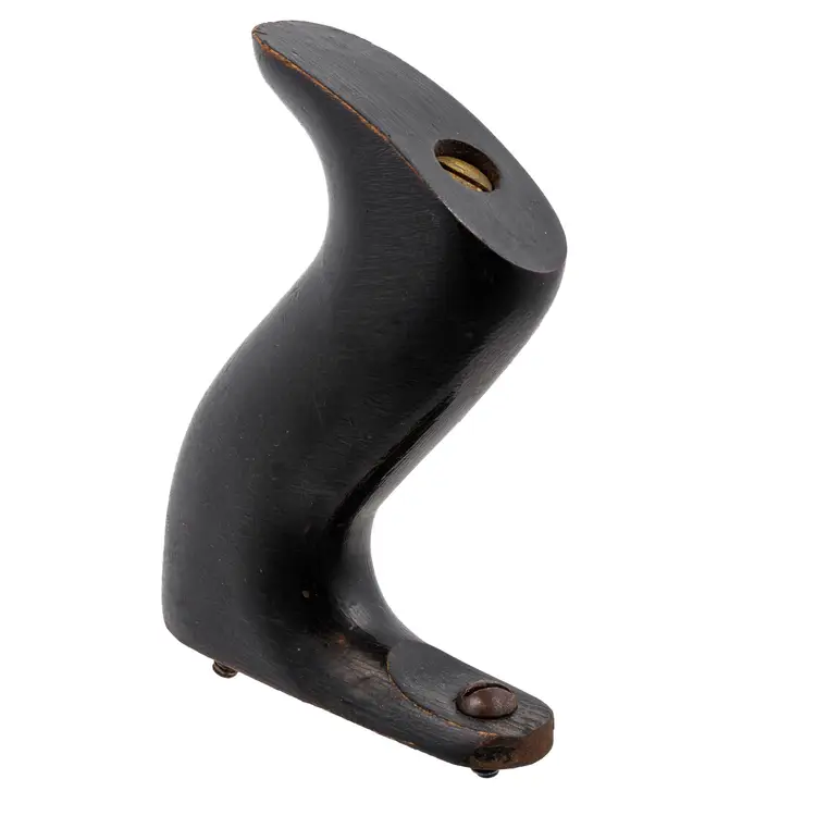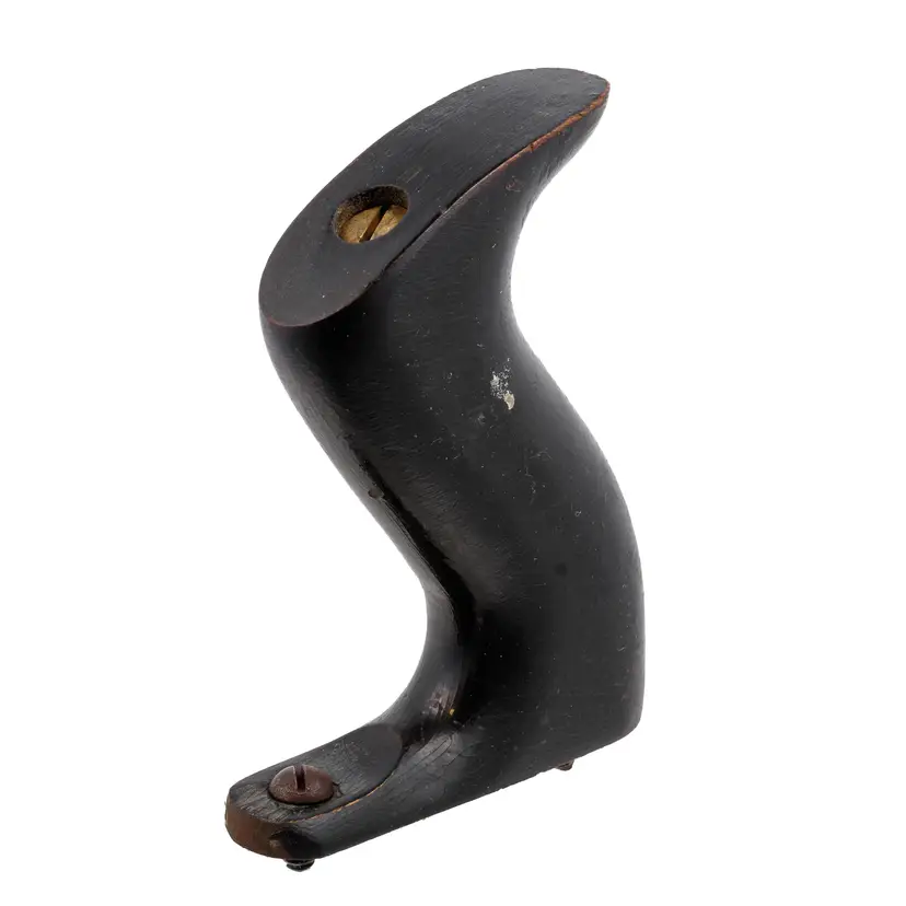 A Nice hardwood handle for Stanley's larger metallic hand planes. It is not rosewood, but the hardwood with black finish used specifically in 1946 and 1947 only. It will still fit other vintages as well since only the type of wood and finish is unique to this time frame. It is the larger size which fits plane numbers 4-1/2, 4-1/2C, 5, 5C, 5-1/2, 5-1/2C, 6, 6C, 7, 7C, 8, and 8C. Although the following models were discontinued by this time, it will also work with No's 604-1/2, 604-1/2C, 605, 605C, 605-1/2, 605-1/2C, 606, 606C, 607, 607C, 608, 608C, G5, G5C, G6, G6C, G7, G7C, G8, G8C, A5, A6, S5, 10 and No. 52. No damage.