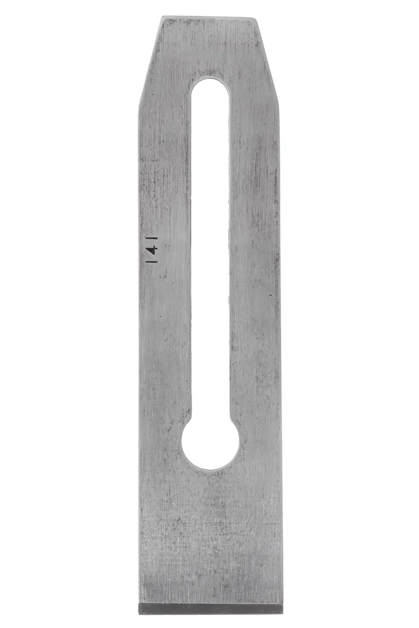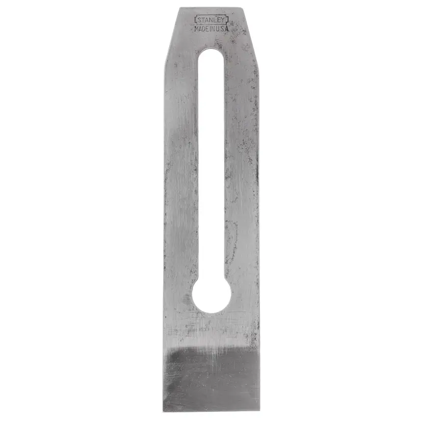 This is an original replacement Stanley plane iron. It is 1-3/4" wide, which works with hand plane No's 3, 5-1/4, 603, 605-1/4, 20, 21, 22, 23, 113. It has the "BB" trademark stamp and was salvaged from a type 16 No. 3 smoothing plane and has "141" stamped on it, indicating it was made between Jan and Mar of 1941. The face has been flattened and it has a new primary bevel using the extra course DMT diamond plates. It will need honed for use. The primary bevel is square to one side, but not to the other - meaning the sides are slightly out of parallel, which will not cause any issues in use.