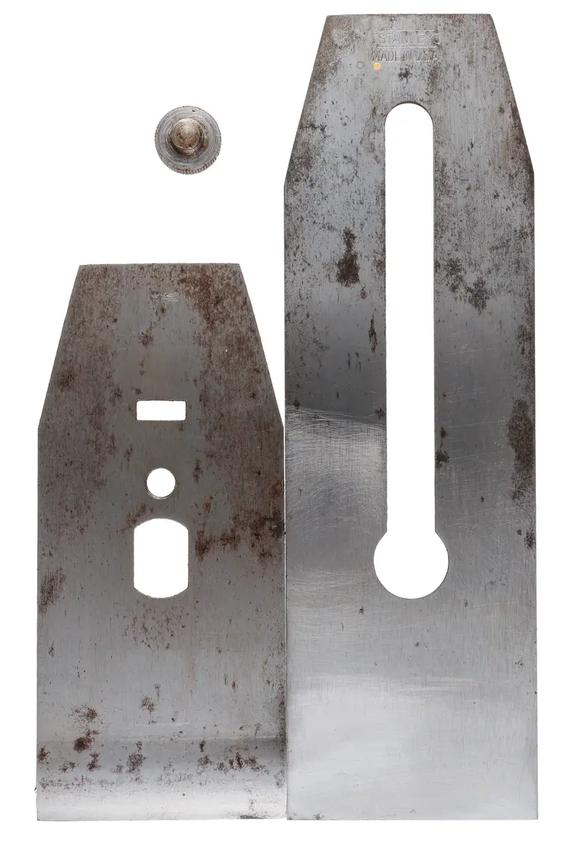This is an original replacement Stanley plane iron for metallic planes. It is 2-3/8" wide, which works with hand plane No's 4-1/2, 5-1/2 (post 1936 only), 6, 7, 604-1/2, 605-1/2, 606, 607, and 51. It has the "BB" trademark used after 1935 and was salvaged from a type 18 (1946-1947) No. 6 plane. It has a nice freshly-ground bevel but will need honed for use.