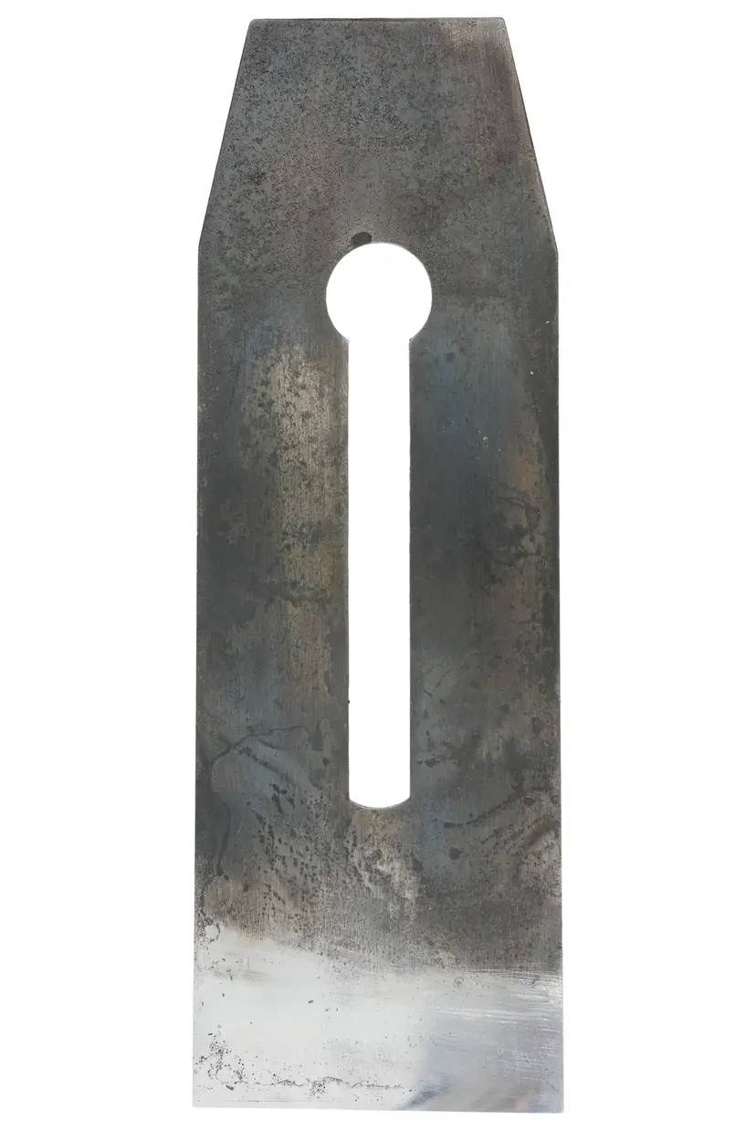 An original replacement Stanley single plane iron. It is 2-5/8" wide, which works with hand plane No's No. 8, 32, 33, 34, 37, and 608. It has the "J" trademark, which was use from 1874-1884. It is 7-12/16 inches long and is nice and sharp. FM_821_1110_365844667265