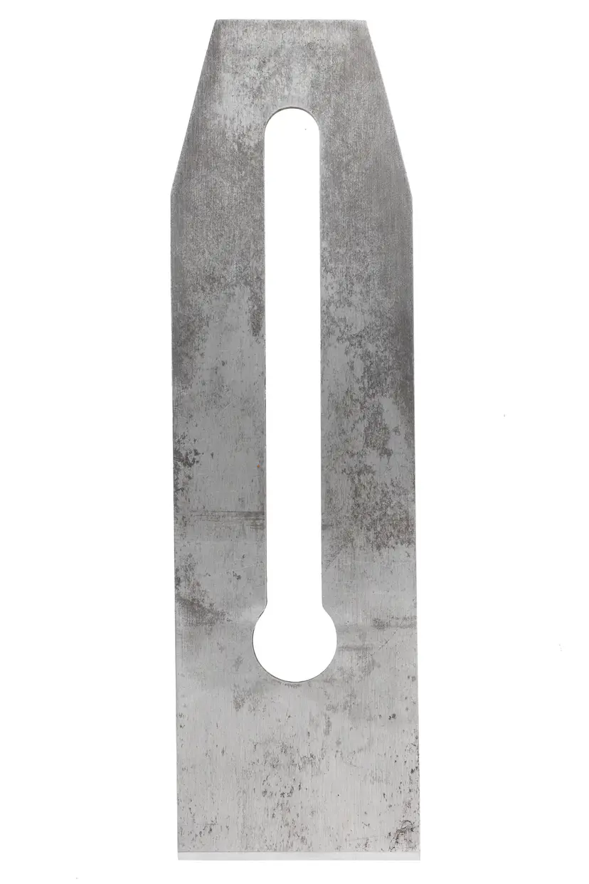 This is an original replacement Stanley plane iron. It is 2" wide, which works with hand plane No's 4, 4C, 5, 5C; BEDROCK 604, 604C, 605, & 605C STEEL S4 & S5; ALUMINUM A4 & A5; TRANSITIONAL 24, 26, & 35; & No. 9. It has a fresh bevel but will need honed for use.