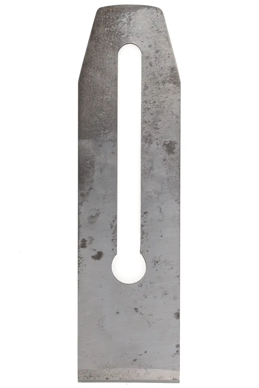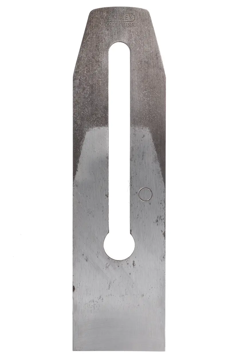 This is an original replacement Stanley plane iron. It is 2" wide, which works with hand plane No's 4, 4C, 5, 5C; BEDROCK 604, 604C, 605, & 605C STEEL S4 & S5; ALUMINUM A4 & A5; TRANSITIONAL 24, 26, & 35; & No. 9. It is practically unused and full length but will need sharpened. Salvaged from a type 19 plane.