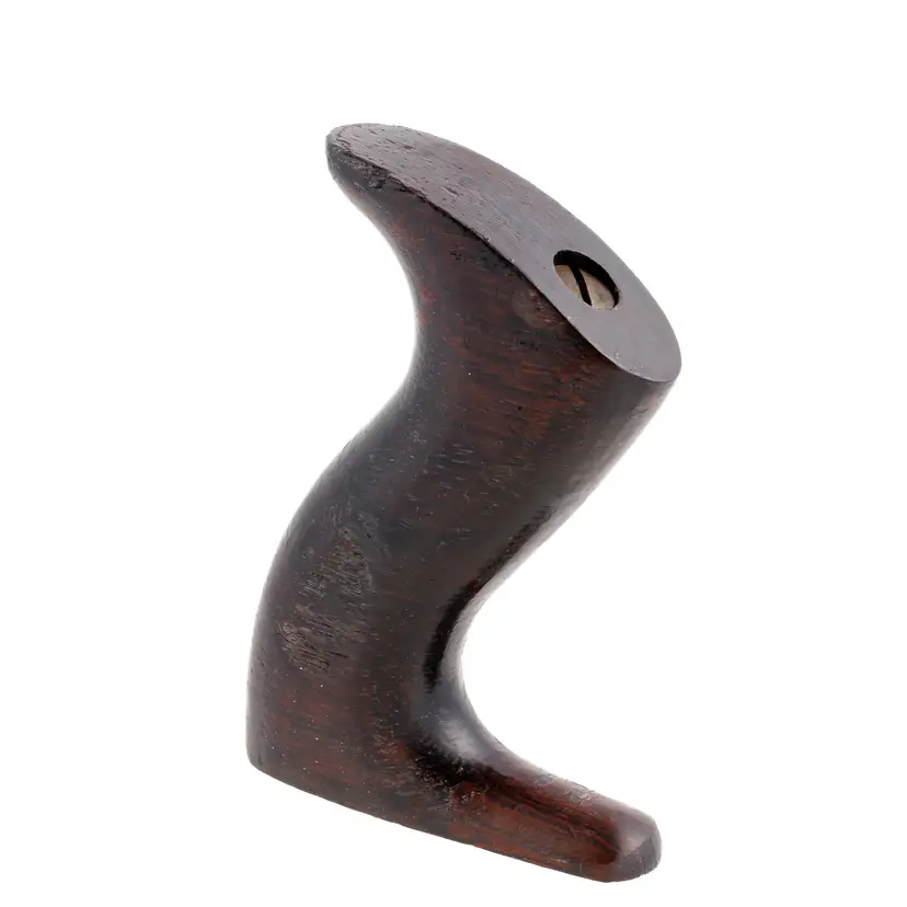 A Good rosewood handle for vintage Stanley hand planes. It is the smaller style used on the No. 3, No. 4, and No. 5-1/4. It was donated from a type 16 plane. Minor wear in the with a rough patch on one side and some paint splatter.