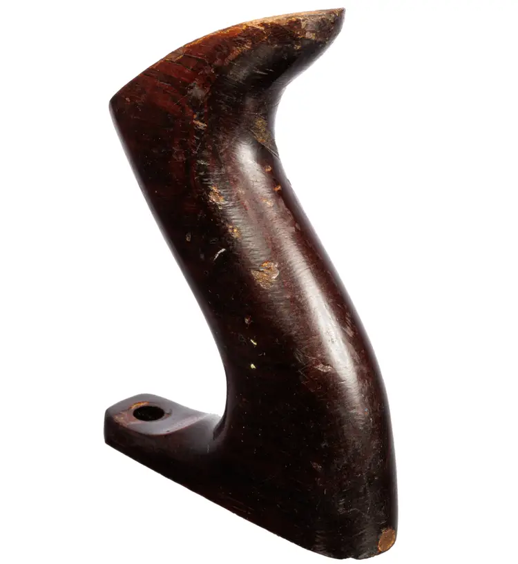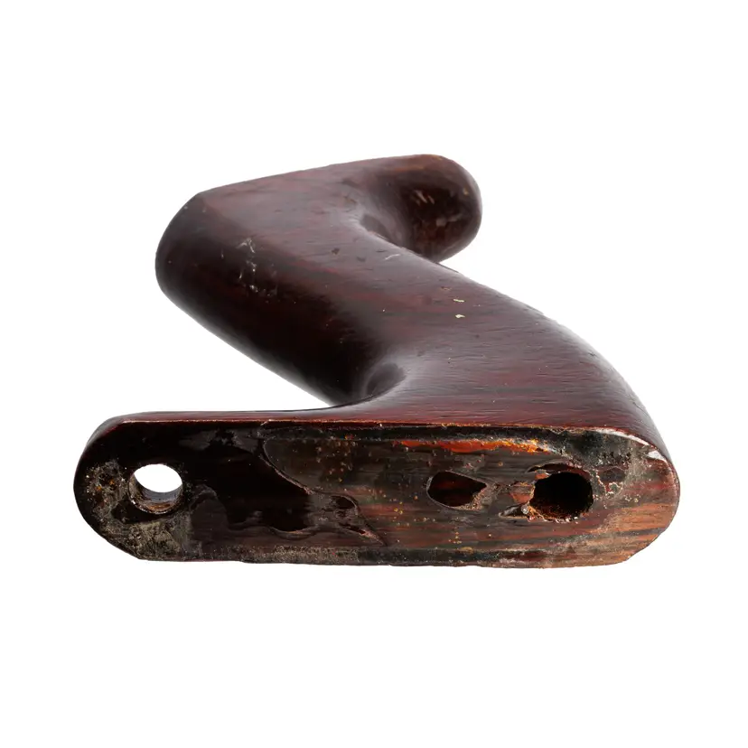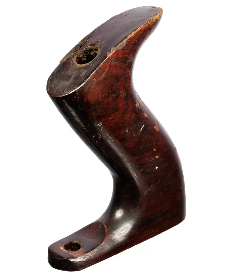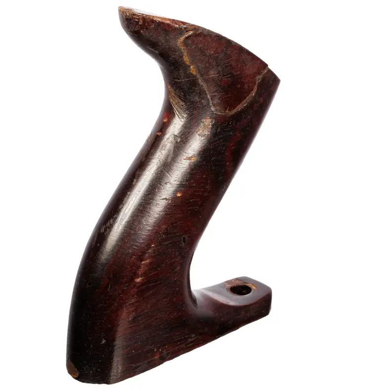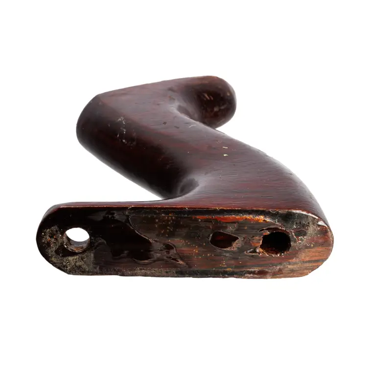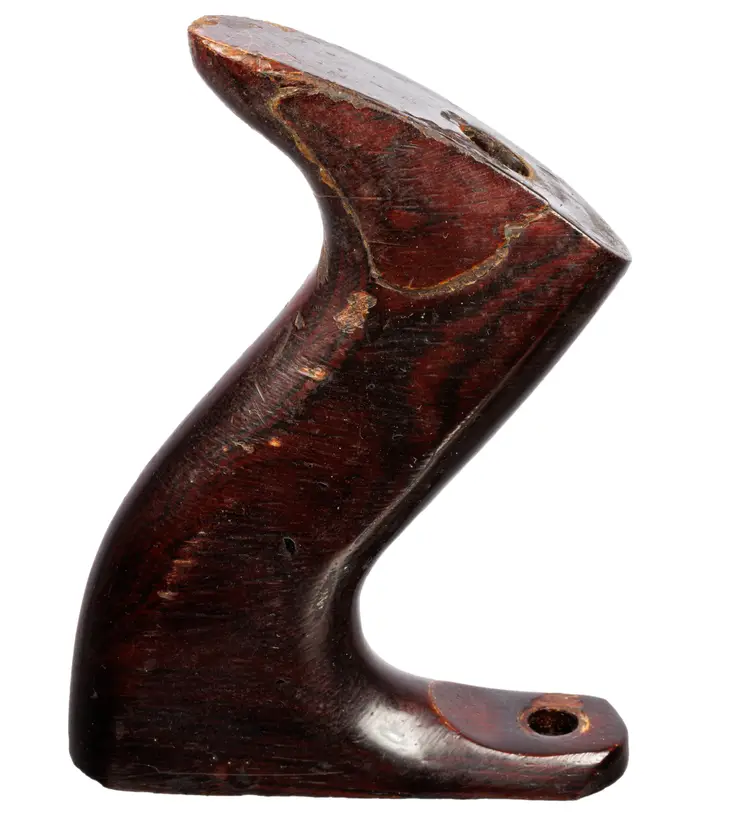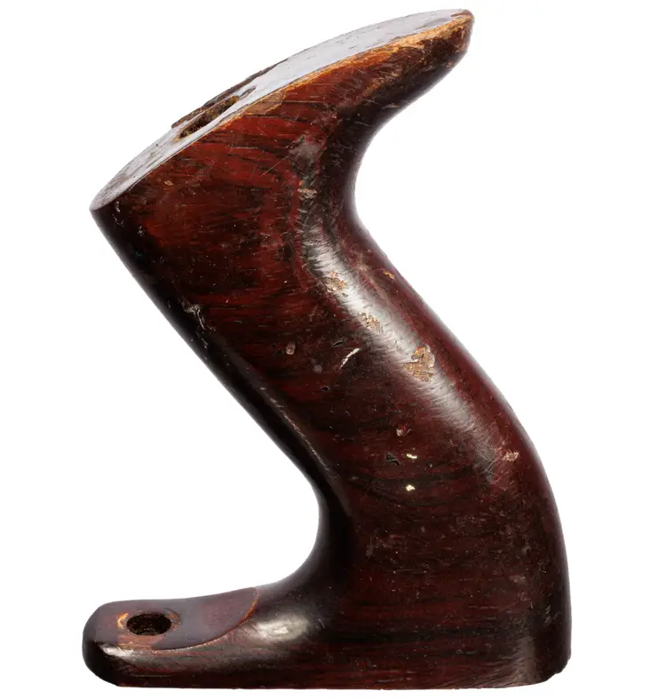 A solid useable handle for stanley's vintage later-type. It was donated from a type 19 plane. It is the larger size which fits plane numbers 4-1/2, 4-1/2C, 5, 5C, 5-1/2, 5-1/2C, 6, 6C, 7, 7C, 8, 8C. It is a solid user and does have a repair made by a previous owner, in which a slice was glued back on to the right side. It does not come with the original screws, but will work with your existing screws.