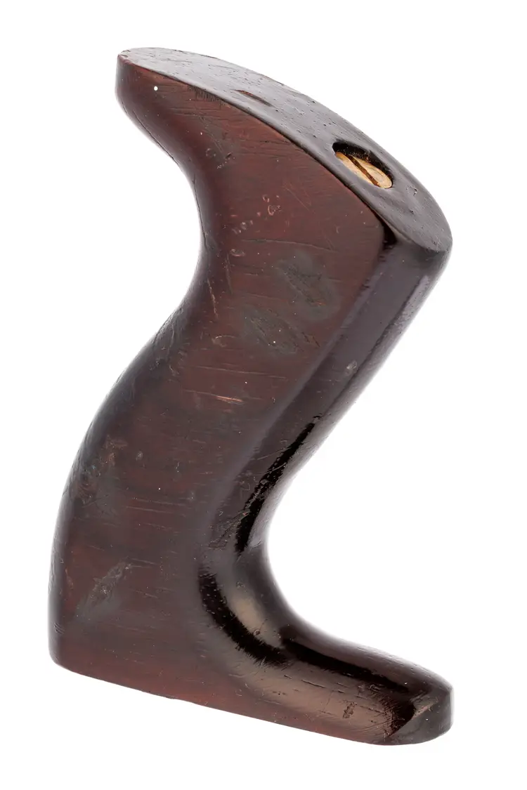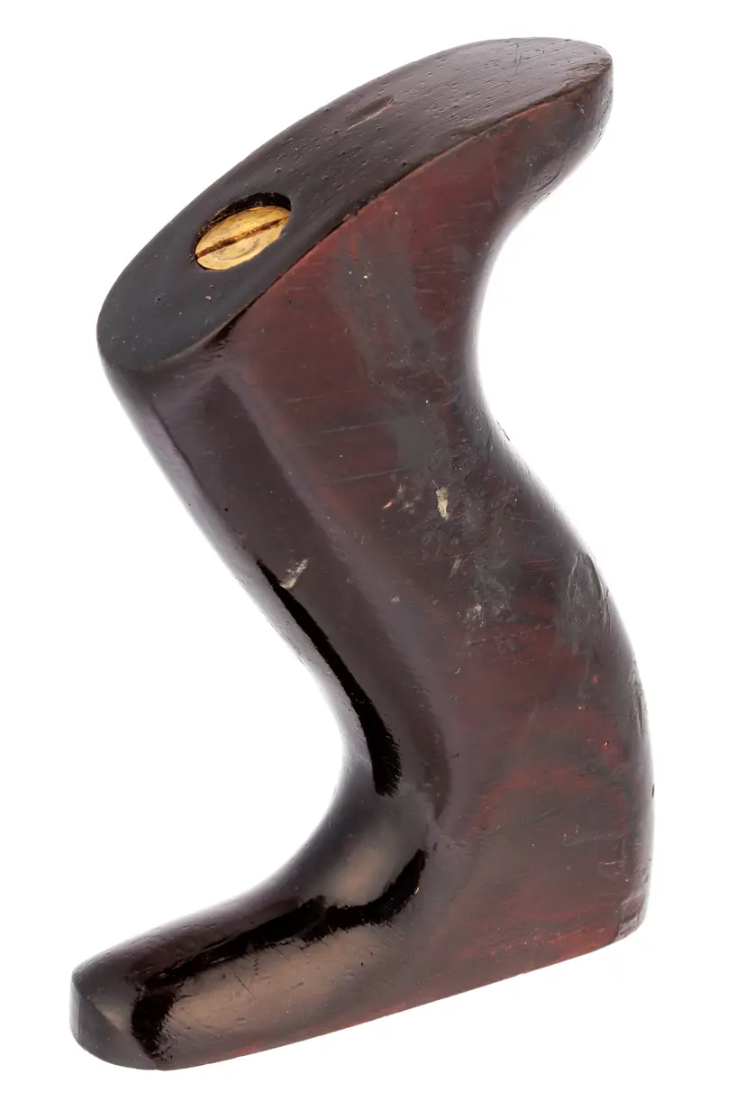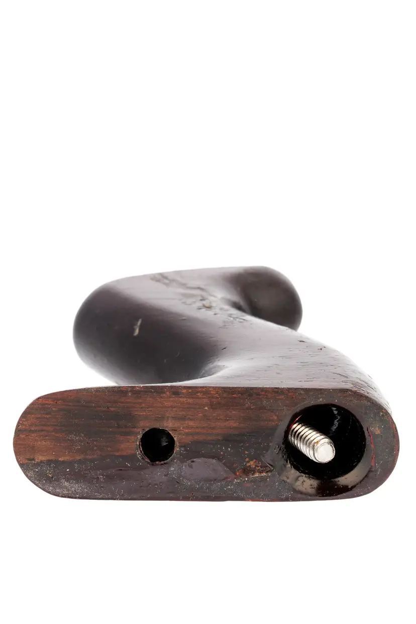 A Good Plus rosewood handle for vintage Stanley hand planes. It was salvaged from a type 19 plane. The last photo is of a box that is not included, but rather to show the sizes of planes that this handle fits - No. 3, 4, 5-1/4, 603, 604, 605-1/4, 10-1/2, 72, 112. Please note that earlier planes had a shorter base - this one is designed to work with the plane bodies that have a raised handle receiver. It has some surface wear, dents, scratches, nicks, etc., but no breaks or repairs.
