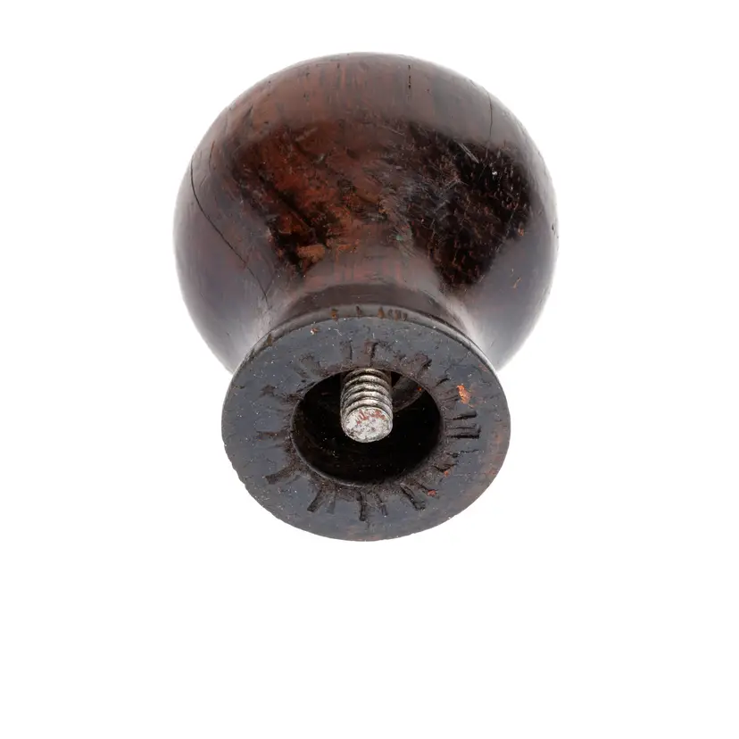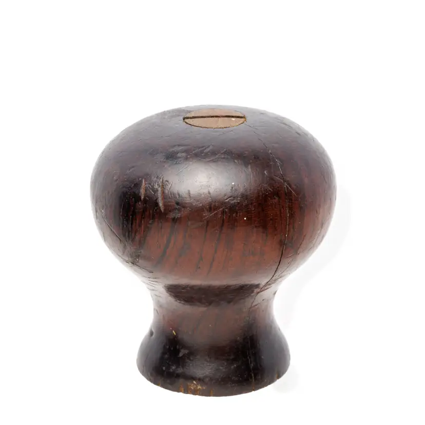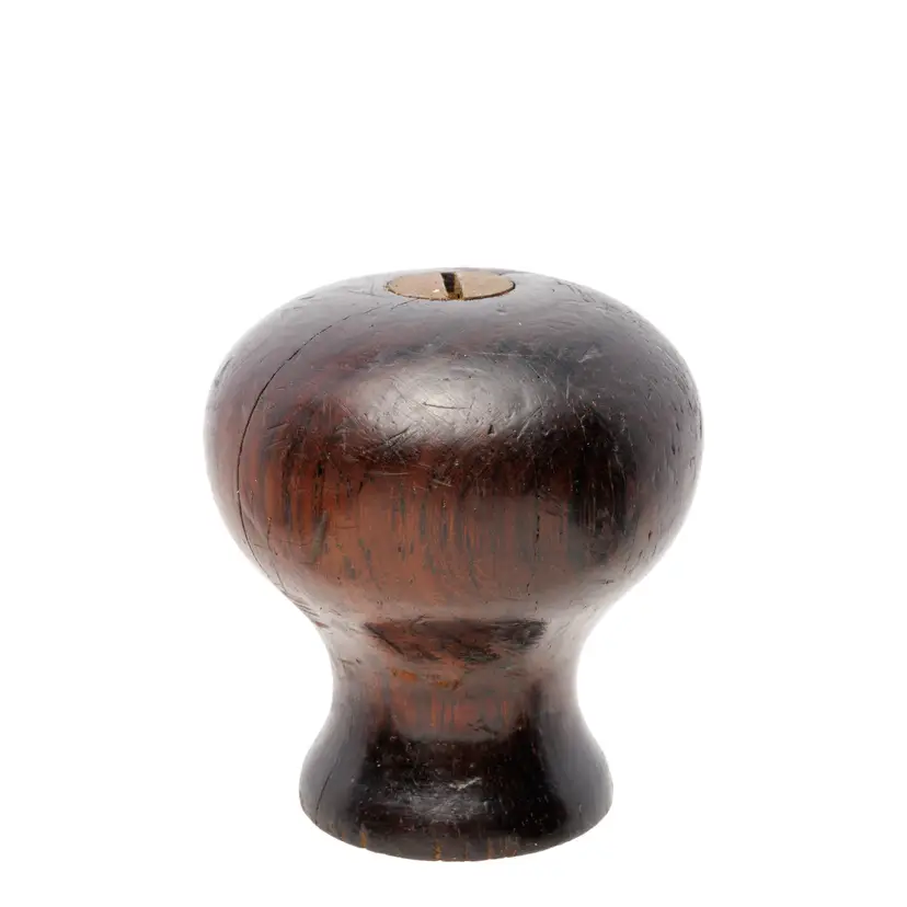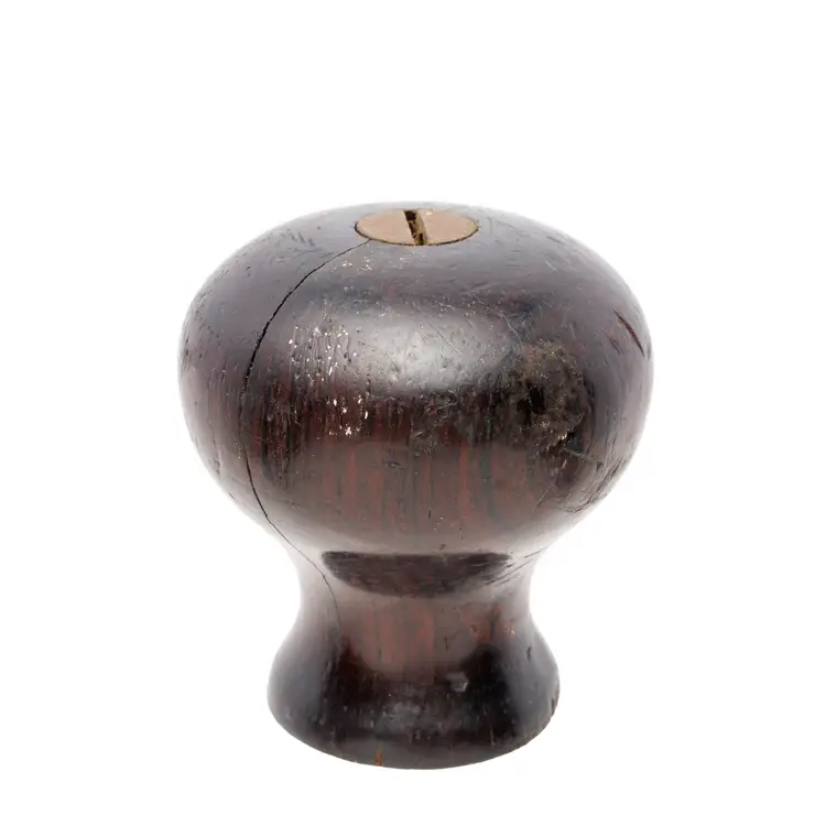 A nice rosewood knob for Stanley's No. 4-1/2 and No. 5 bench planes. It is an earlier style used in types 6-11 (1888-1918). It has a couple of splits in the grain, as well as some paint splatter, but no damage. 1.95" tall x 1.8" wide.