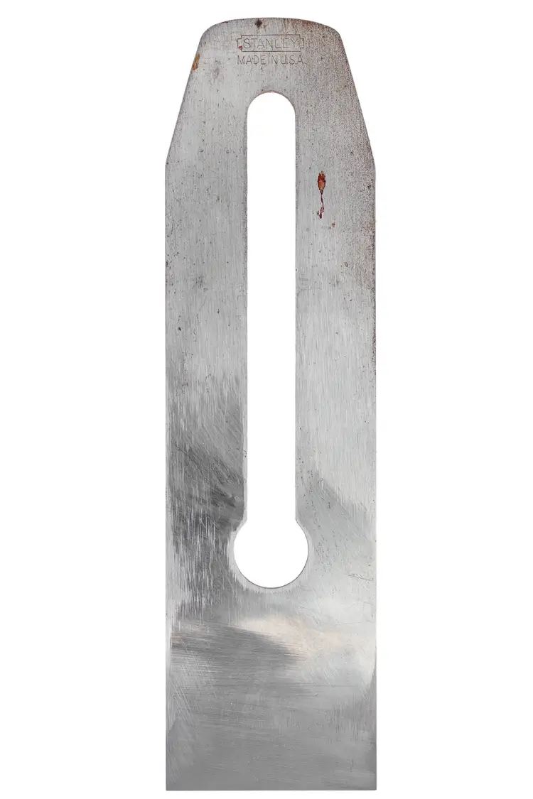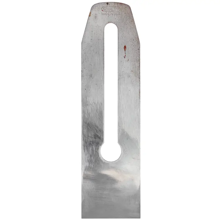 A sharp 2" wide single iron for Stanley's metallic and wooden bodied bench planes. It will fit all stanley planes that require a 2" wide iron. It has the "BB" trademark and was salvaged from a type 19 plane. The bevel has been sharpened, and the face has been flattened with an extra course diamond plate; final honing will be left up to the new owner. 7.25" long.