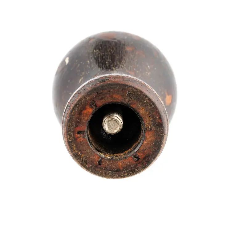 A nice original vintage hardwood knob for a Stanley No. 3, 4, 5-1/4 smoothing plane - type 17 WWII-Era. It will also fit the No. 40 scrub planes which have the raised knob receivers on the plane body and the later style No. 10 rabbet plane. It was donated from a type 17 plane and is not rosewood. It has the tapered base that fits into the knob receiver/ring. There is some wear in the finish and some paint splatter. It comes with the type 17 hardware as well.