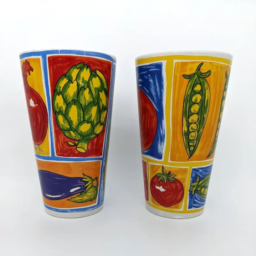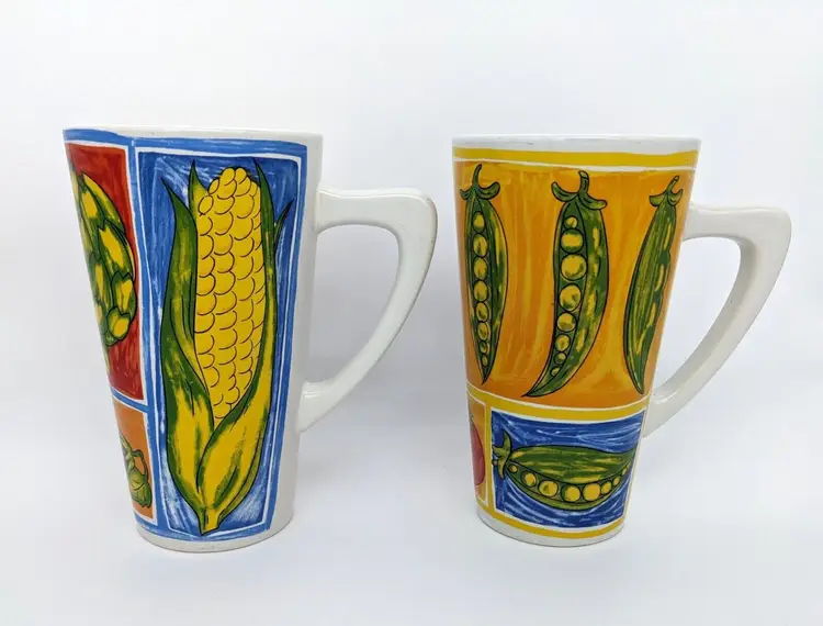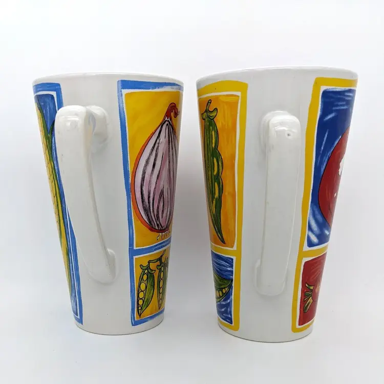 Stanley Roberts Mugs DexignWyrx by Homeworld (2) w/ Vegetables 90s Vintage