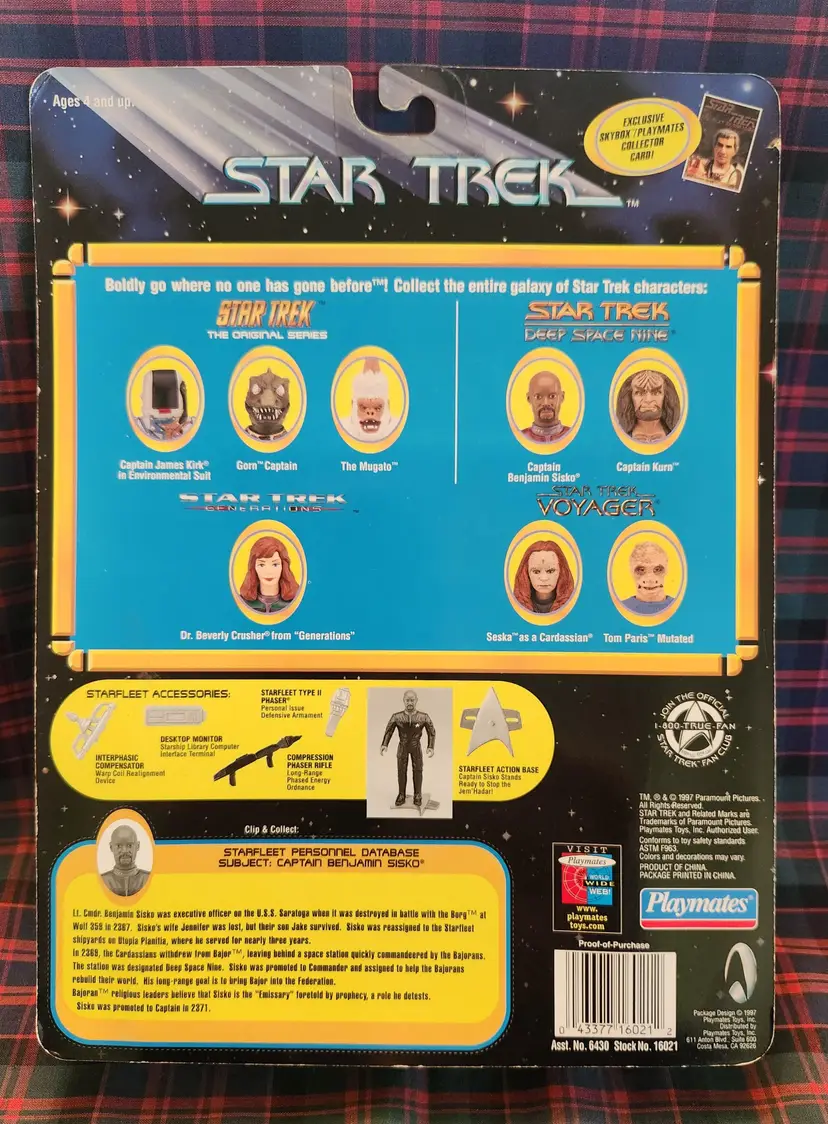 Star Trek DS9 Benjamin Sisko figure, MIB. Scratch on backer card, see photos for details.