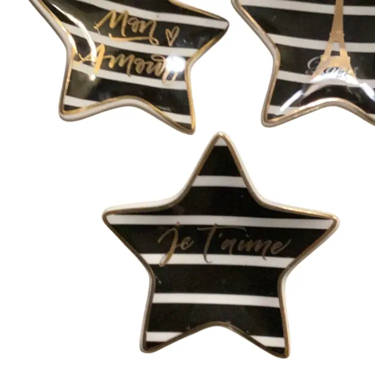 Set of 3 trinket dishes in the shape of stars black and white