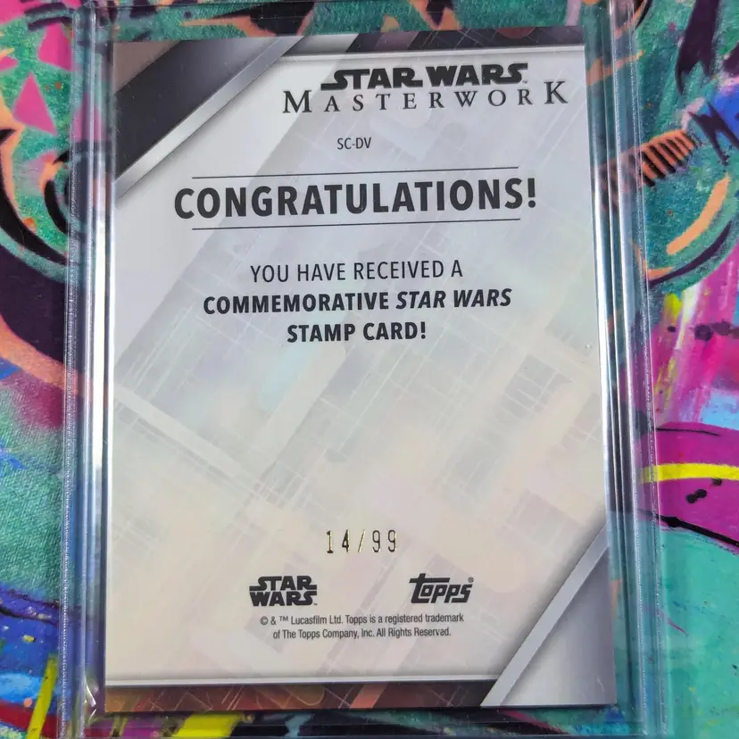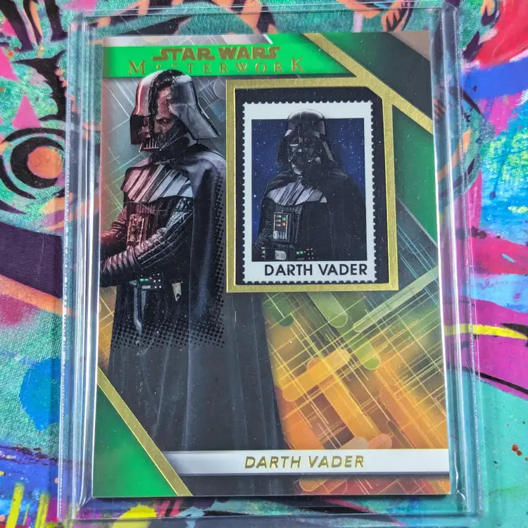 This rare 2022 Star Wars Masterwork trading card featuring Darth Vader is a must-have for any Star Wars fan. The card boasts a unique green parallel/variety and has a stamped relic, making it a one-of-a-kind collectible. The card has been kept in near mint or better condition and has not been graded. It is perfect for adding to an existing collection or starting a new one.