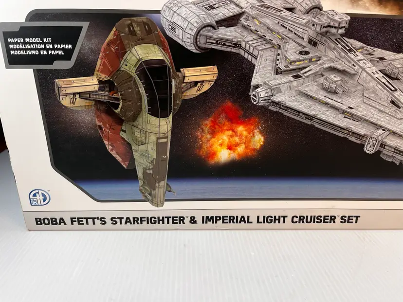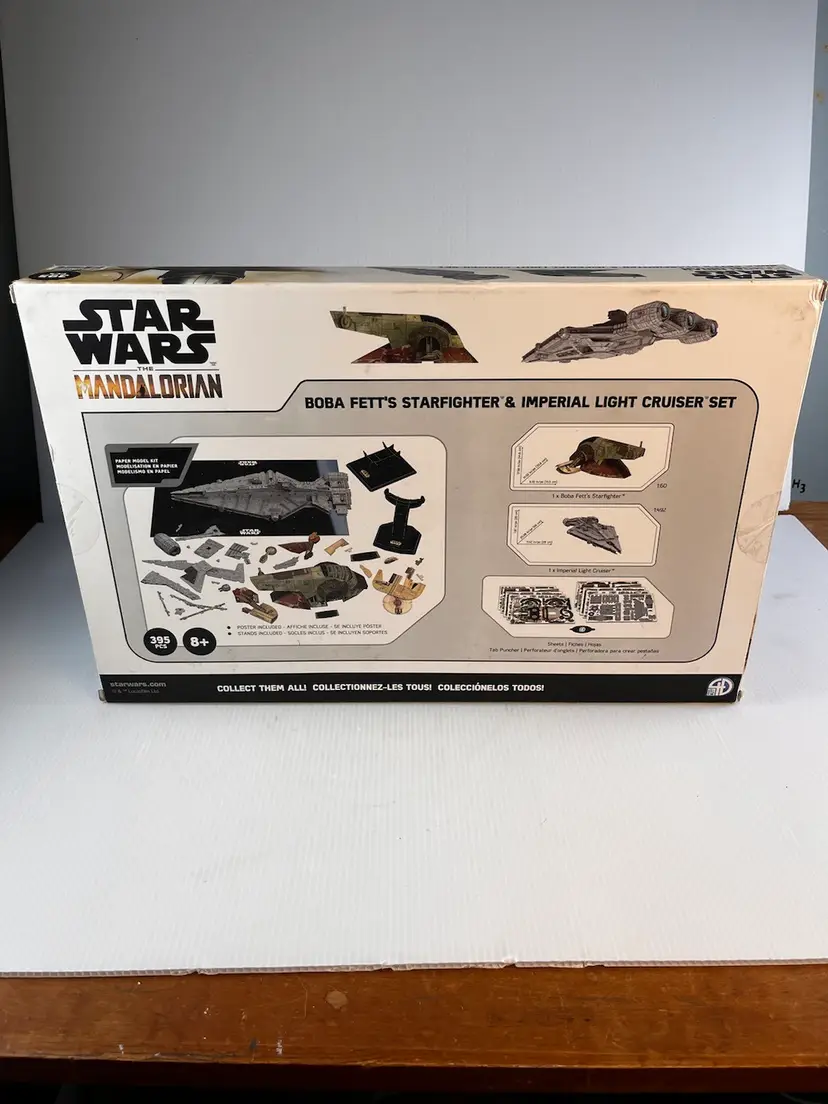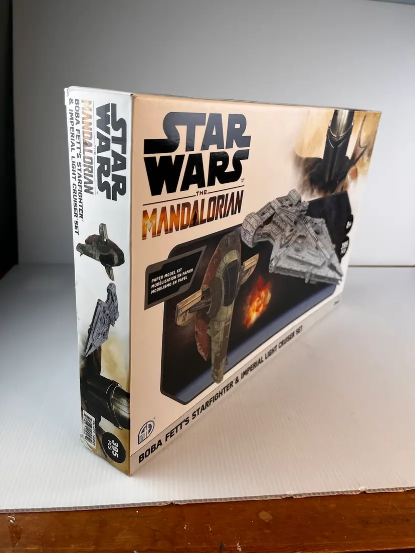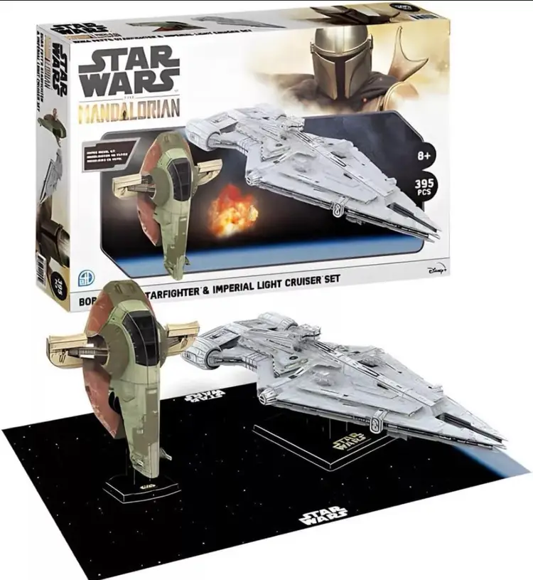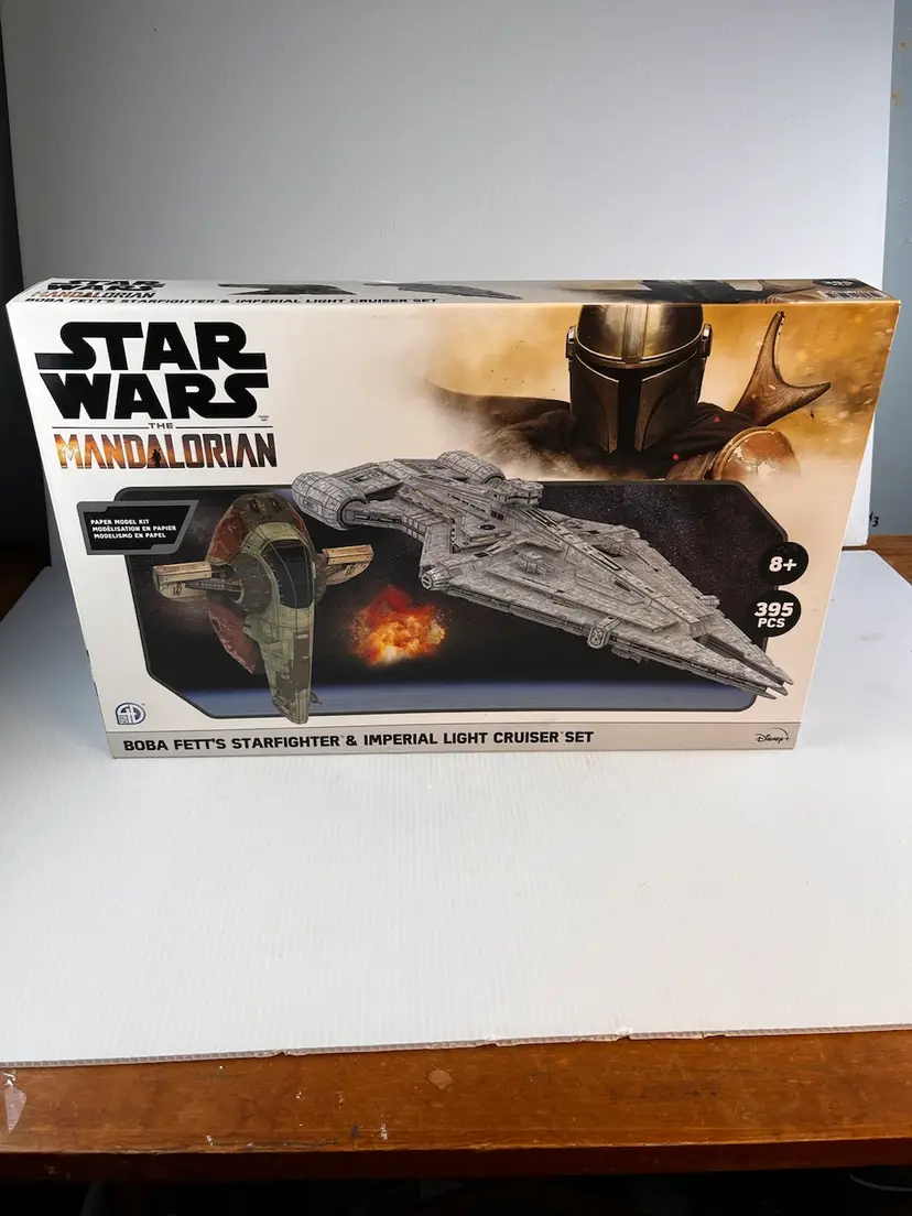 This listing is for a new, sealed Star Wars Mandalorian BOBA FETT STARFIGHTER & IMPERIAL LIGHT CRUISER 4D paper model set.