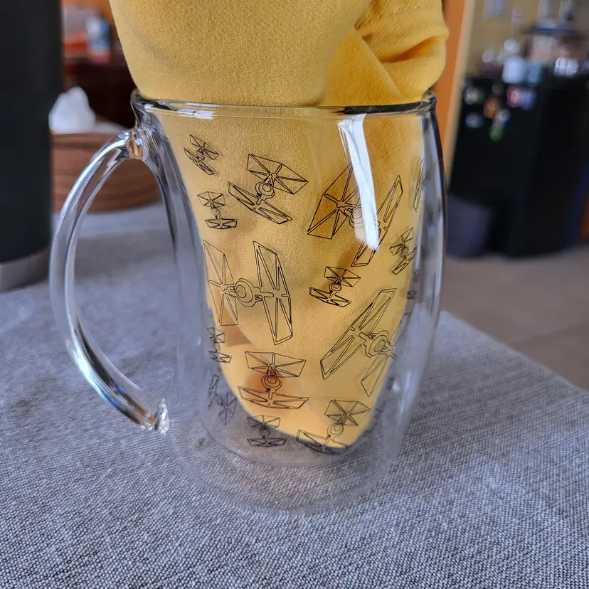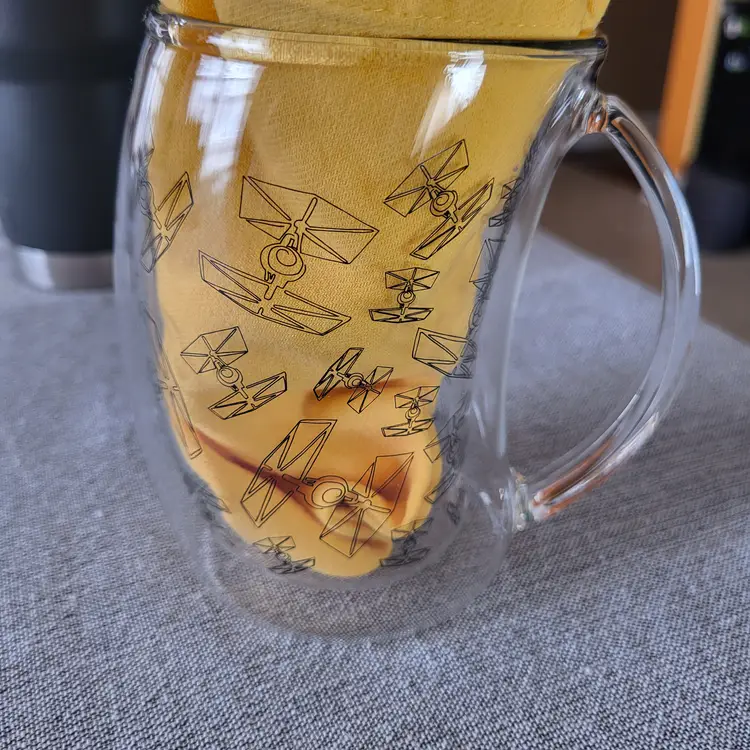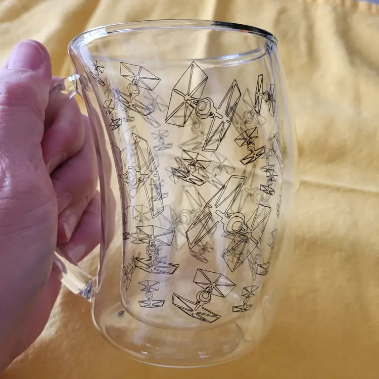 JoyJolt Star Wars TIE Fighter double wall glass mug ~ NEVER USED